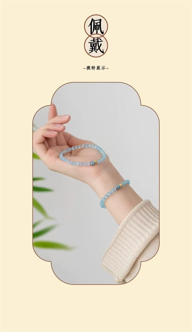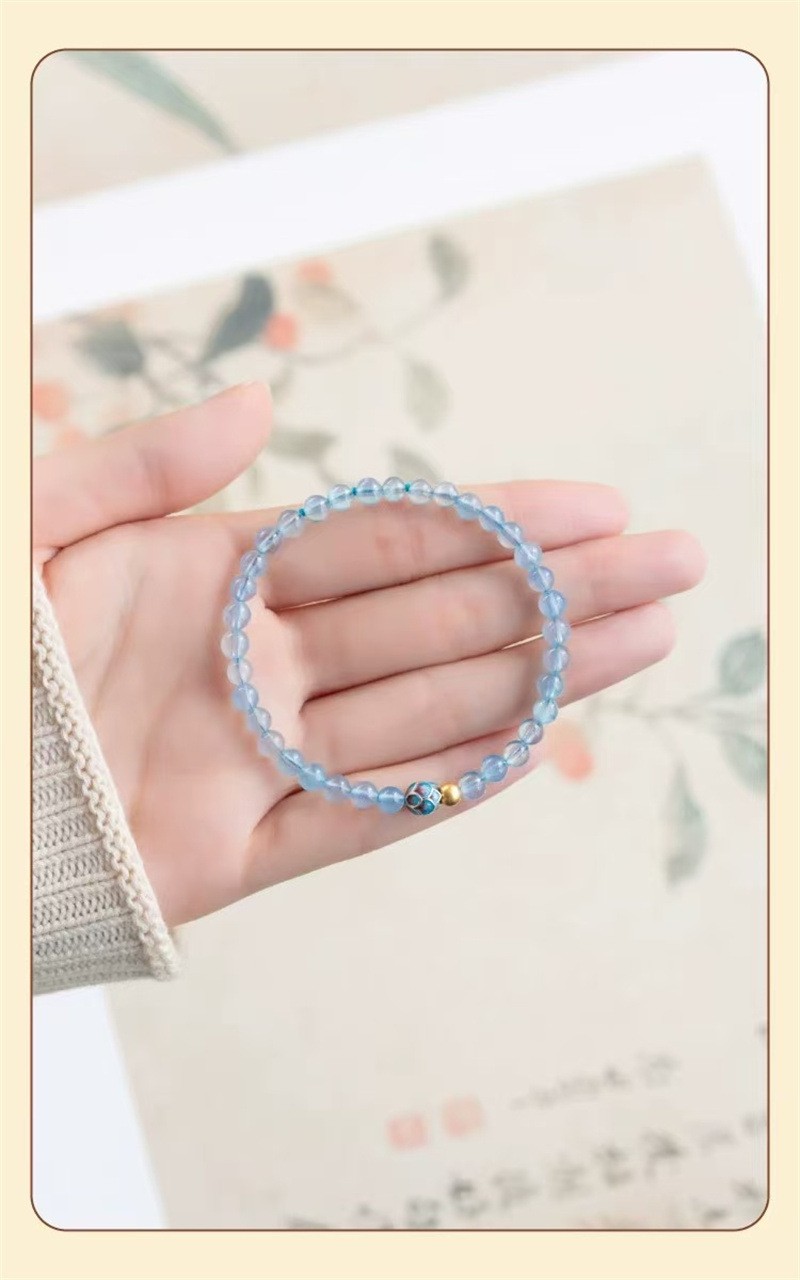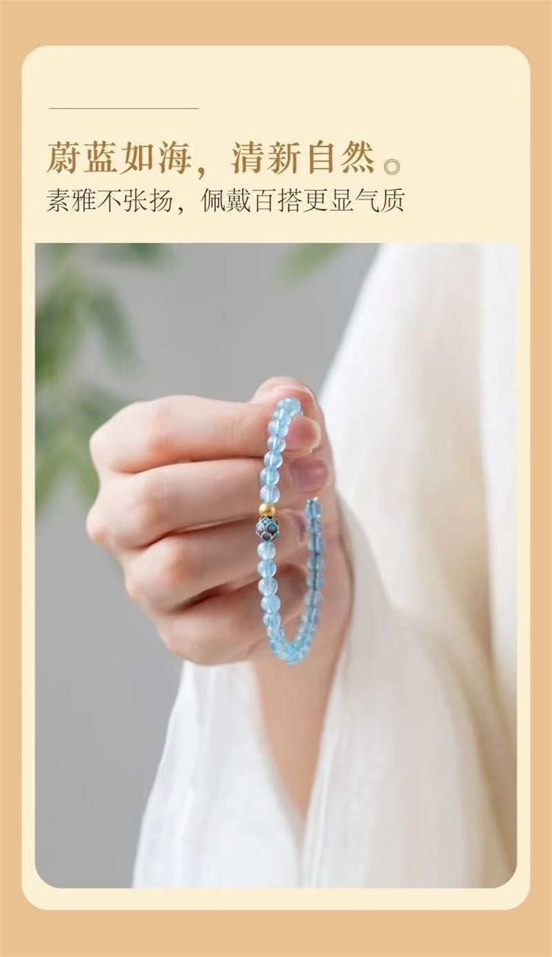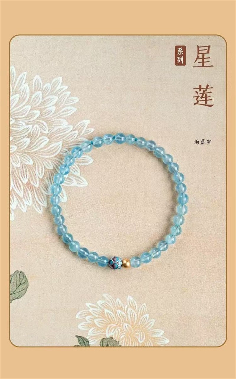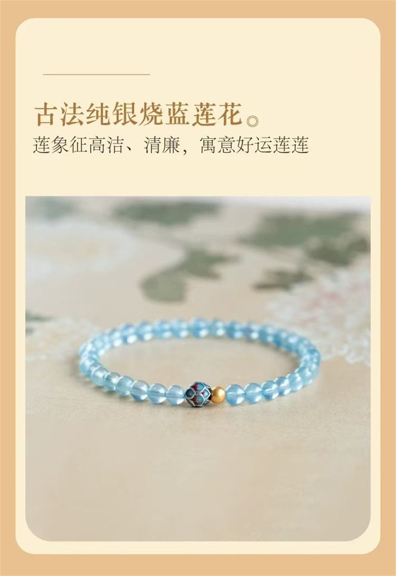 心选丨纯银莲花【天然海蓝宝手串】蓝宝石水晶手链 冰透蓝色