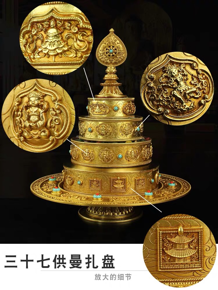 慧宝纯铜曼扎三十七供曼扎盘大号B款室内供佛密宗摆件整套装宝石3斤