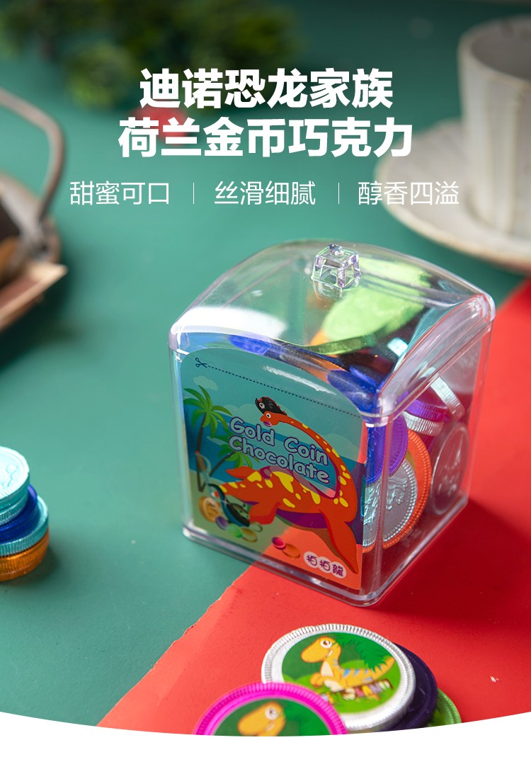 荷兰迪诺恐龙家族荷兰金币巧克力120g/044190 恐龙图案随机柔滑细腻