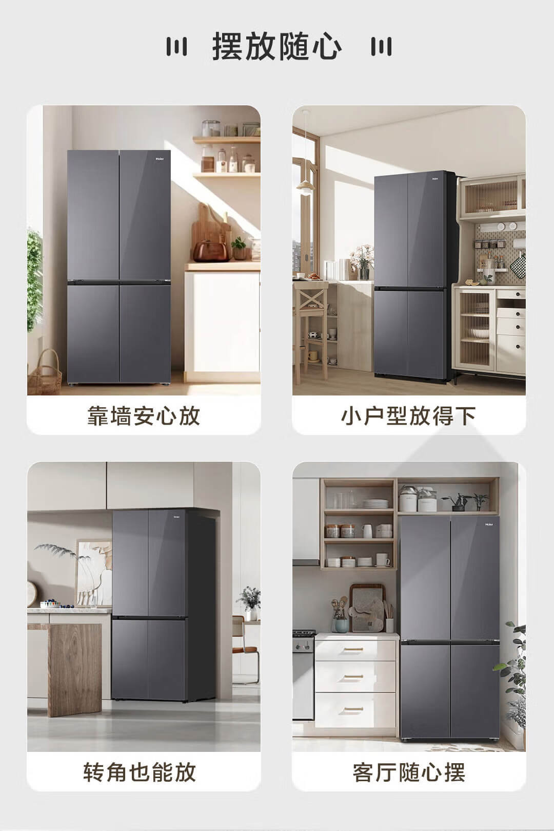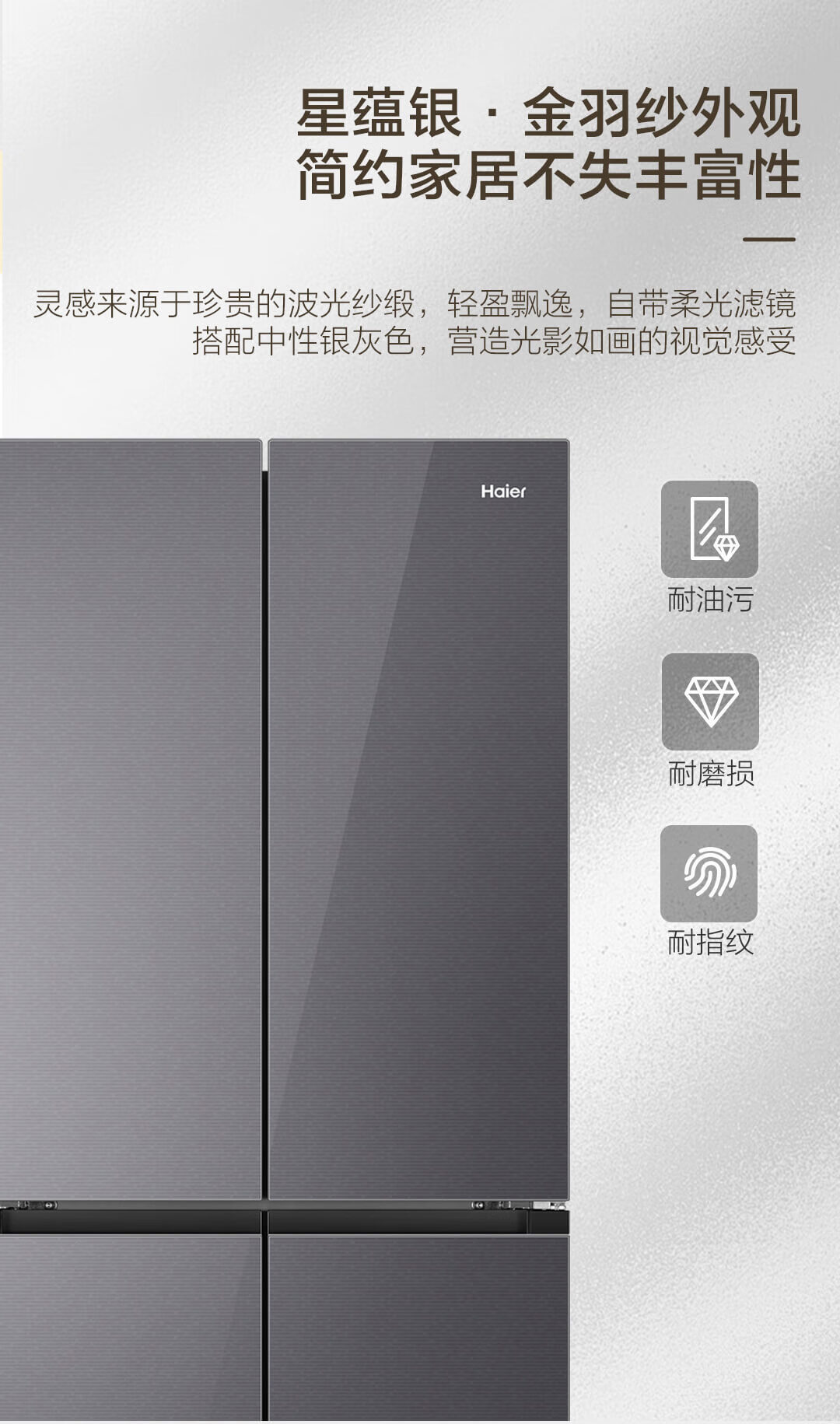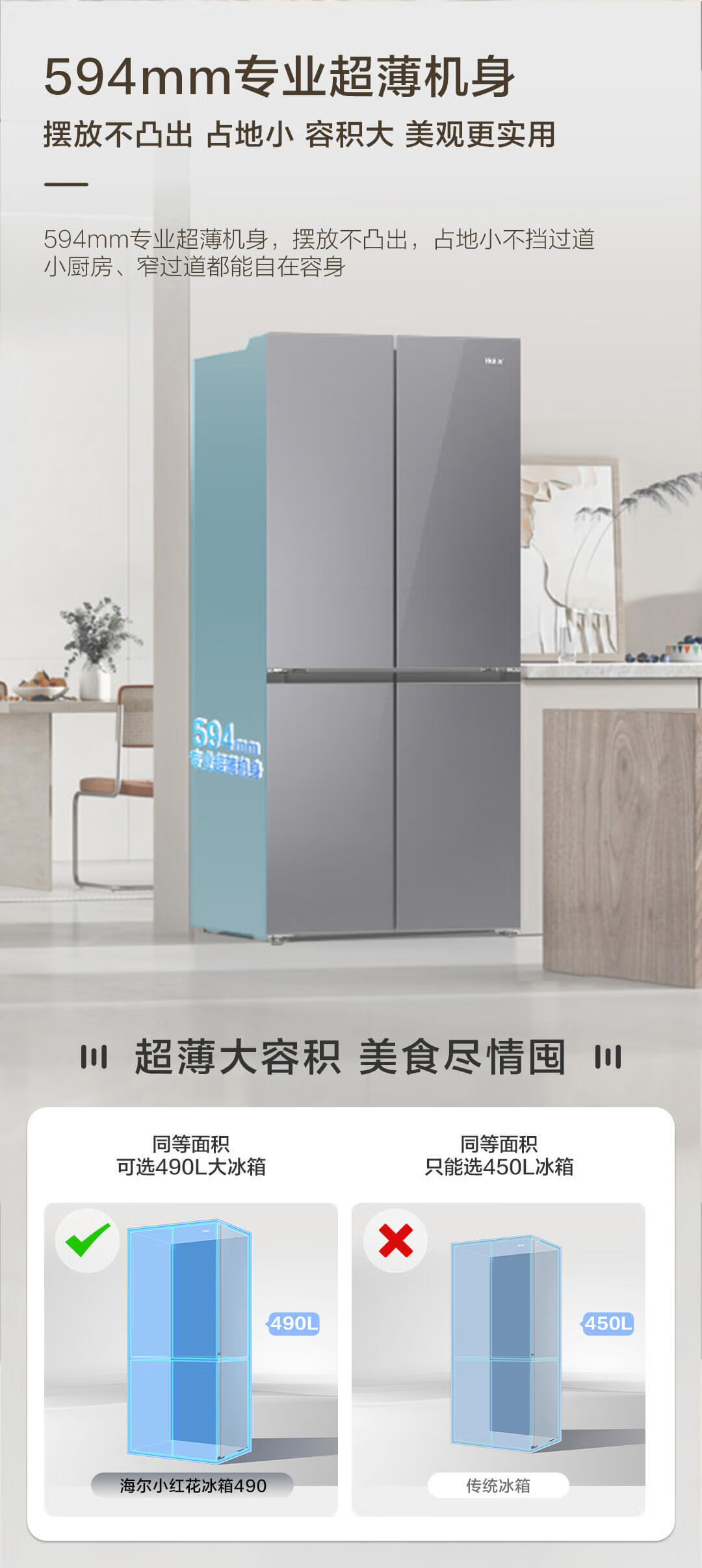海尔(Haier)490升 十字对开电冰箱 干湿分储 三挡变温 黑金净化 双变频 一级能效 wifi智控 594mm超薄 BCD-490WGHTDE5XEU1