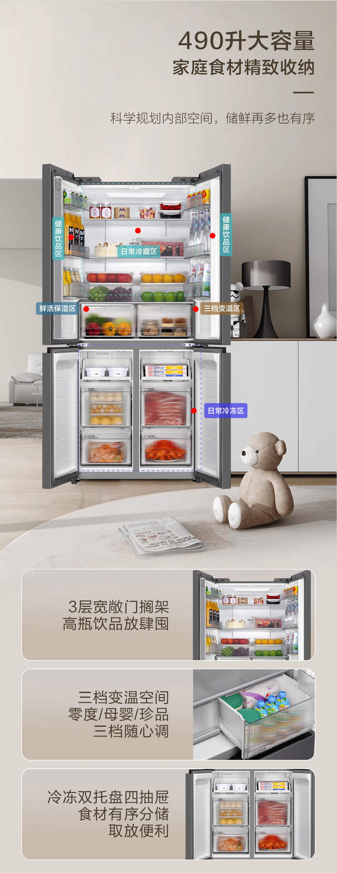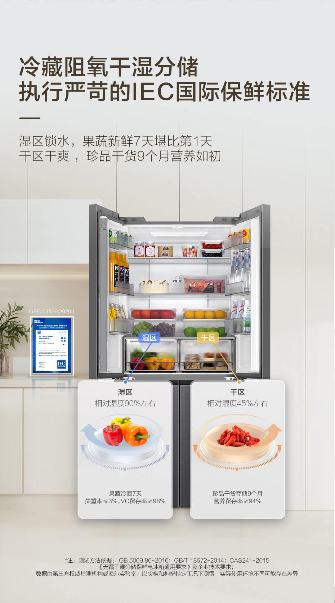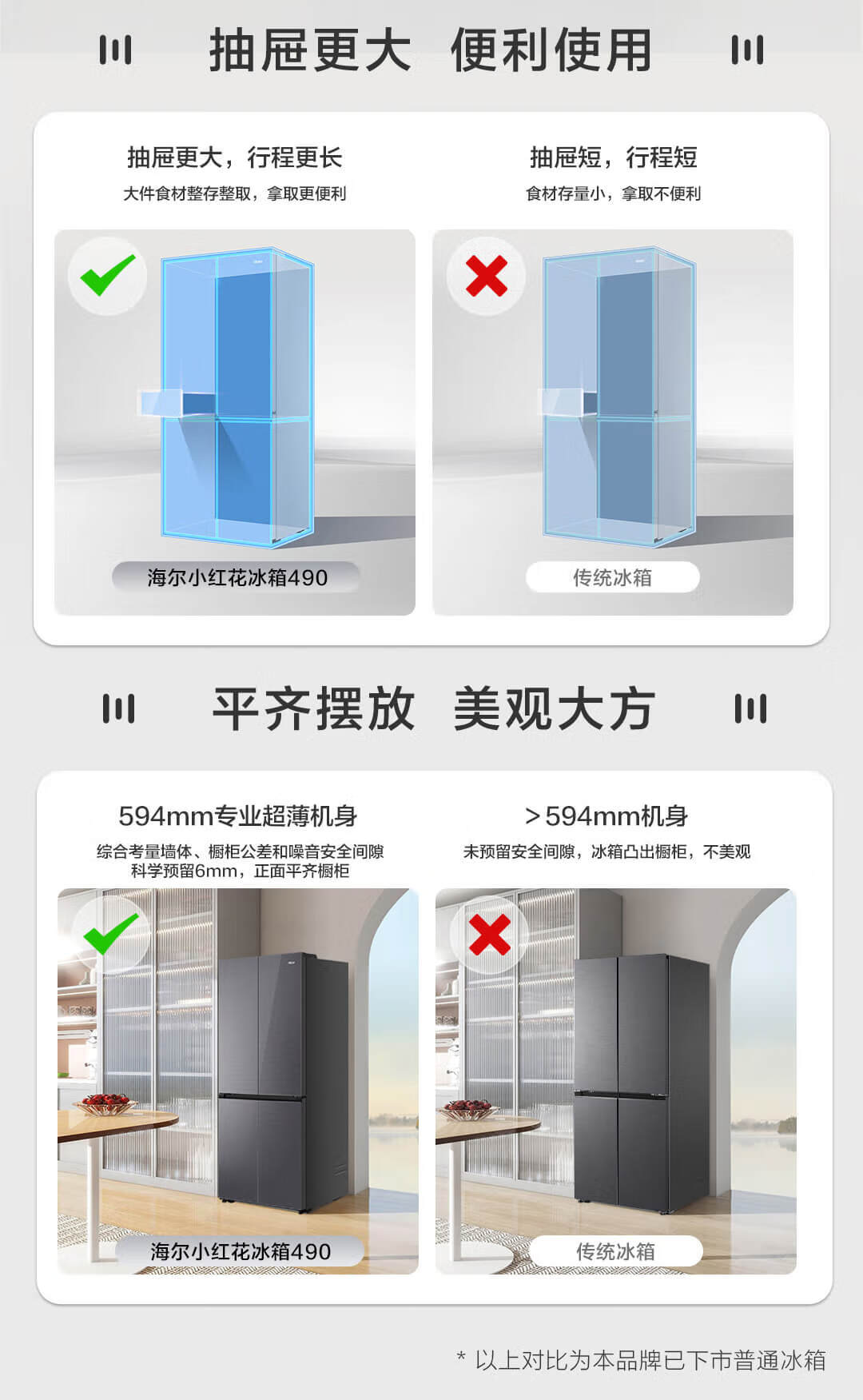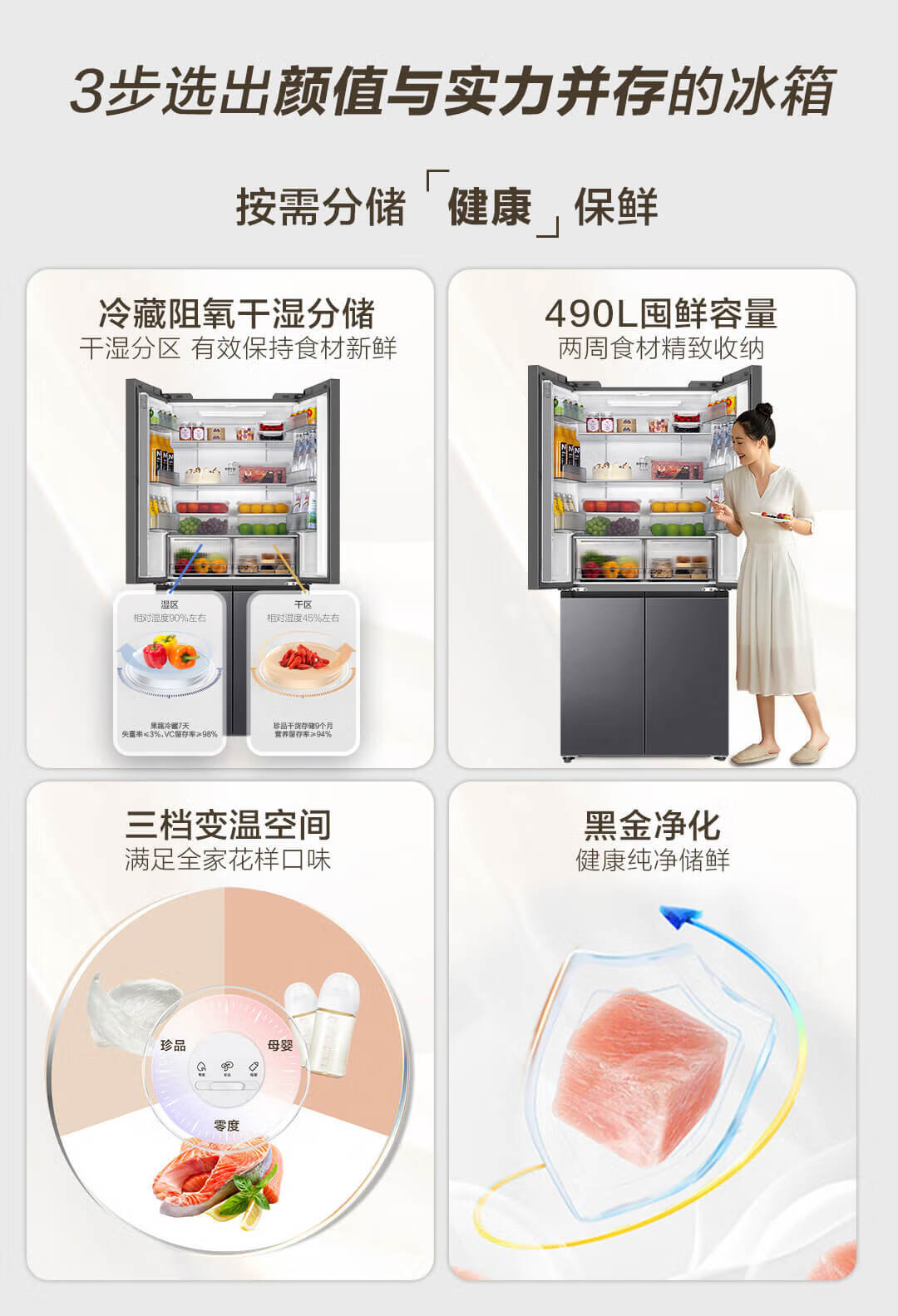 海尔(Haier)490升 十字对开电冰箱 干湿分储 三挡变温 黑金净化 双变频 一级能效 wifi智控 594mm超薄 BCD-490WGHTDE5XEU1