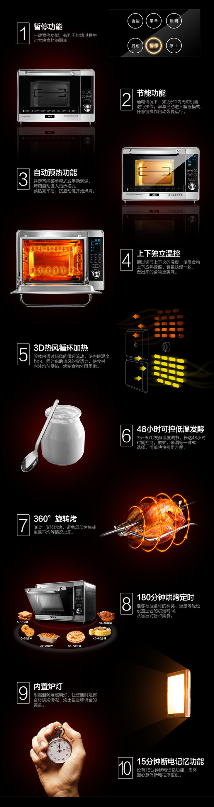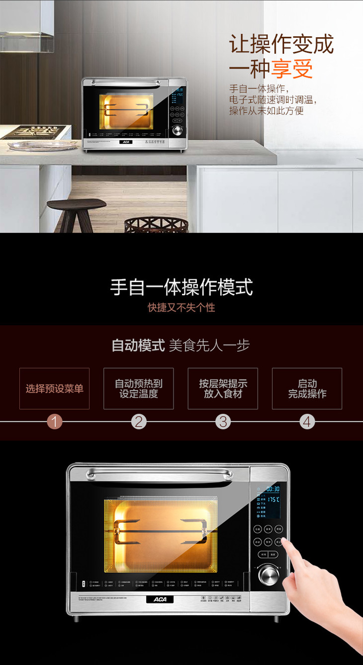 北美电器(ACA)电烤箱家用 36L电子式 高端智能电脑控制ATO-36A8