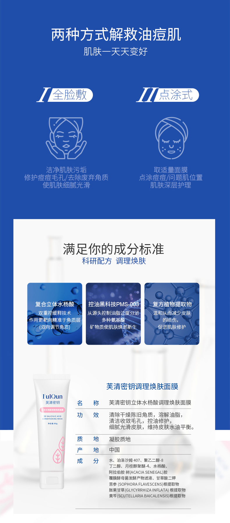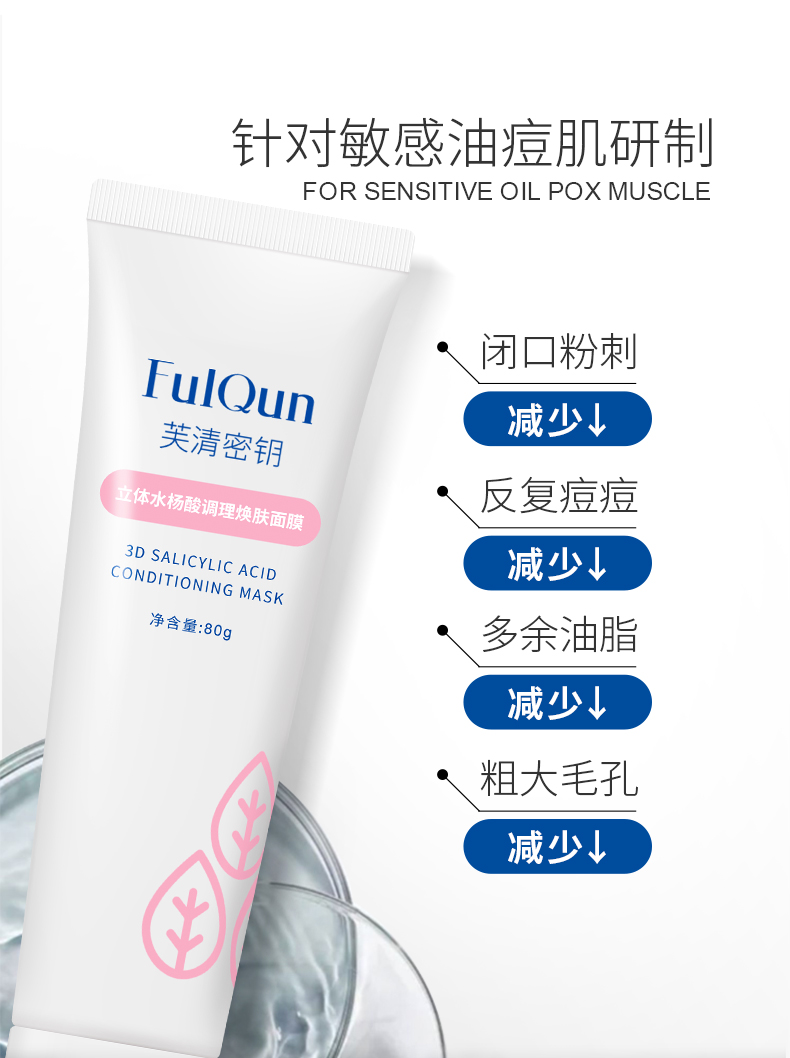 芙清密钥|立体水杨酸调理焕肤面膜 80g|针对油痘肌 清除油脂角质 粉刺痘痘 细致毛孔 控油修护 改善痘痘、黑头白头、闭口粉刺