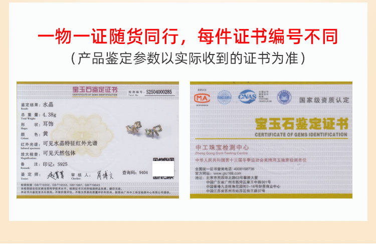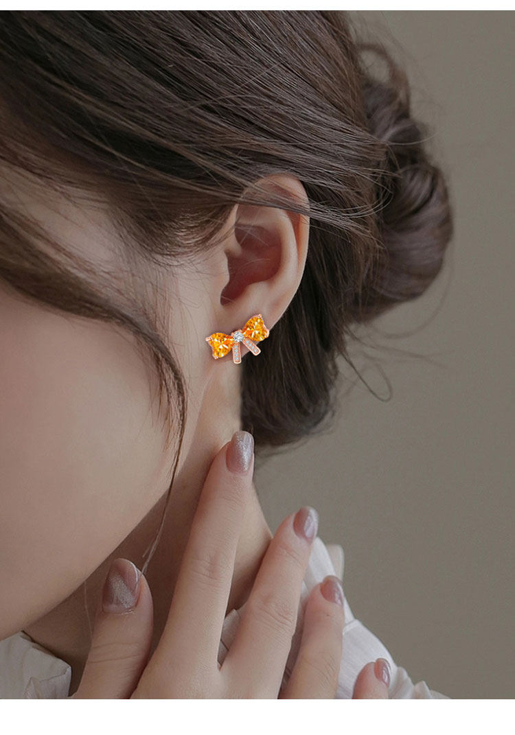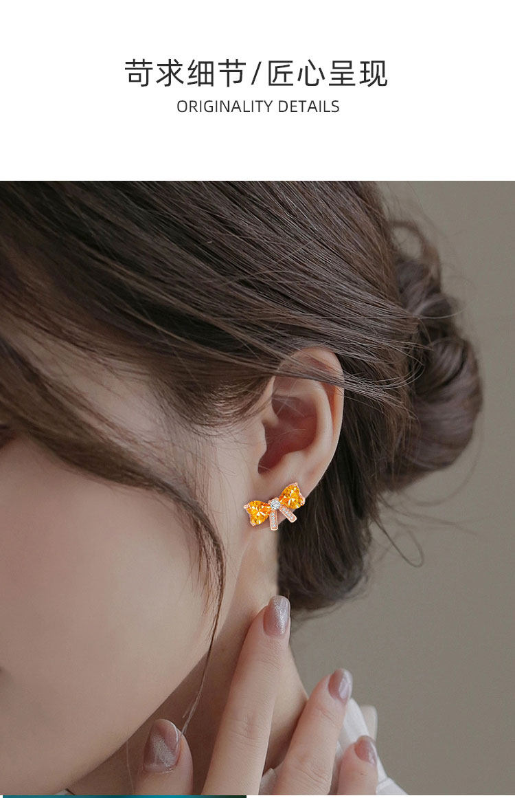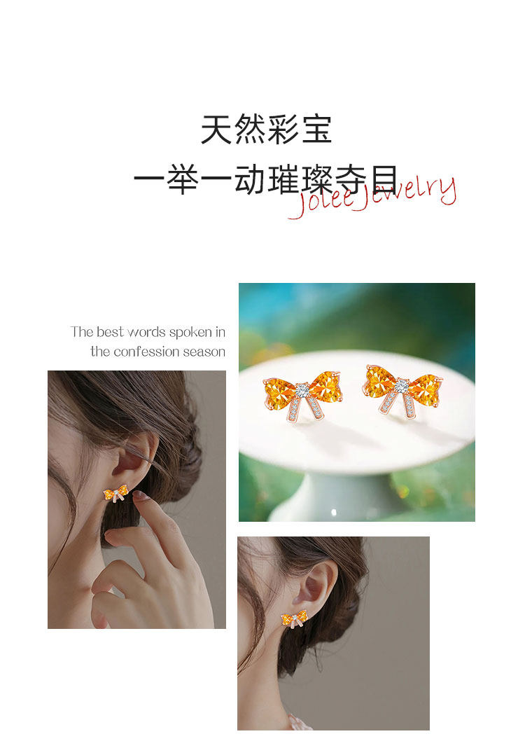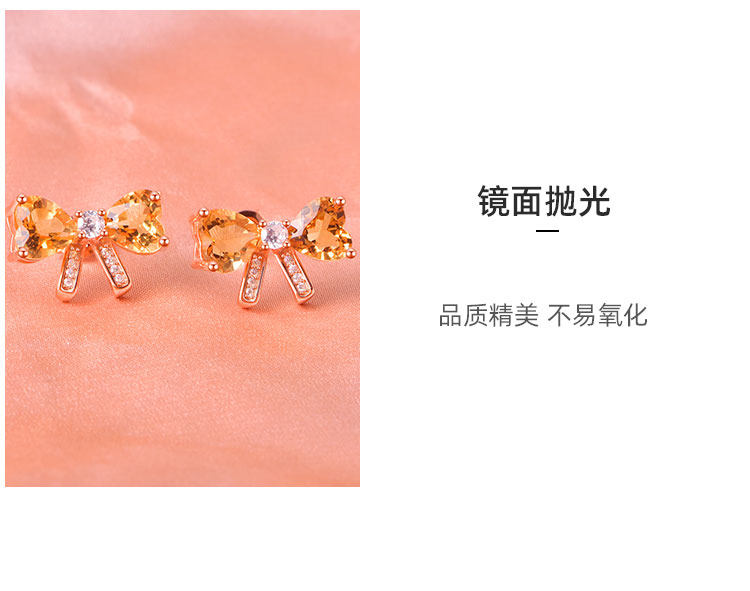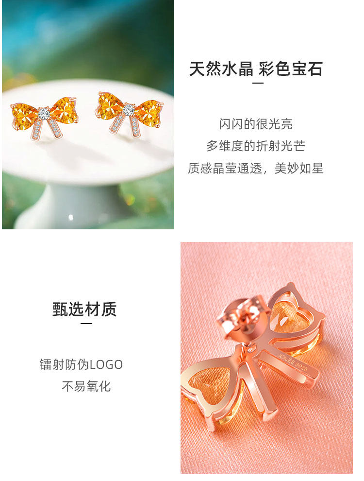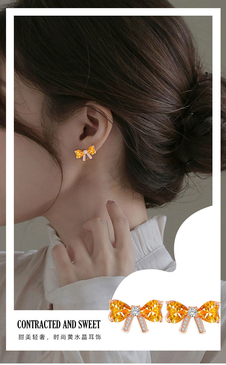 【黄水晶耳钉】S925银轻奢爱心蝴蝶结饰品送女生节日礼物一物一证JE25018-水晶CC