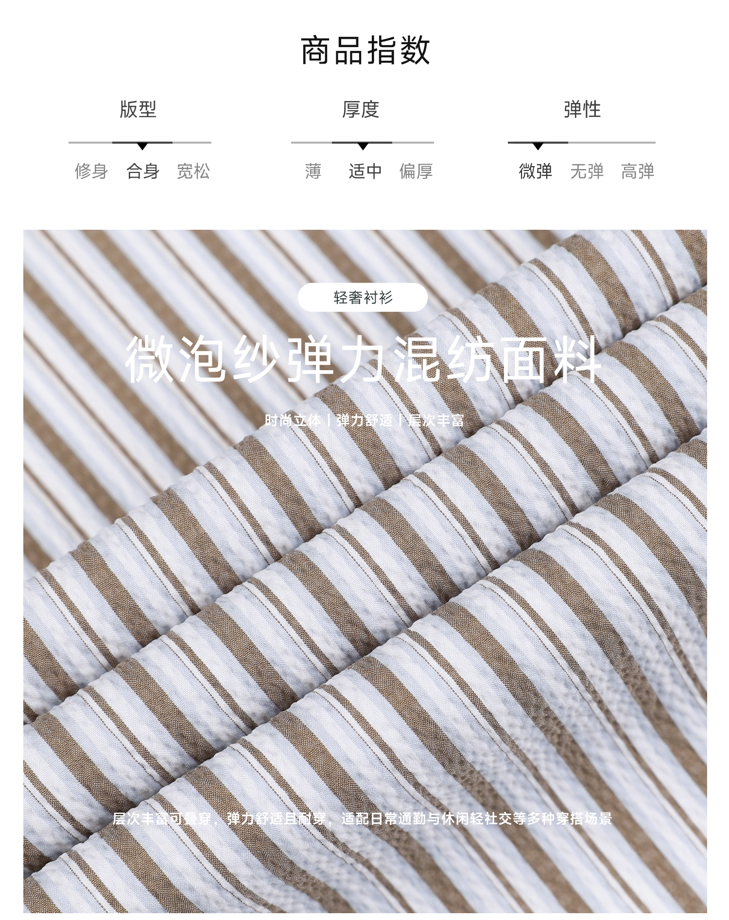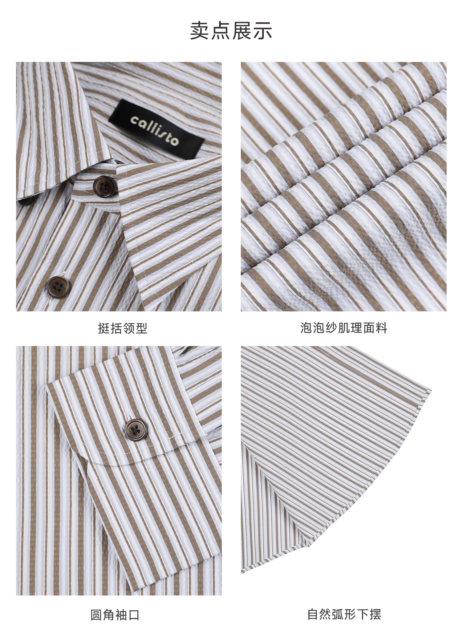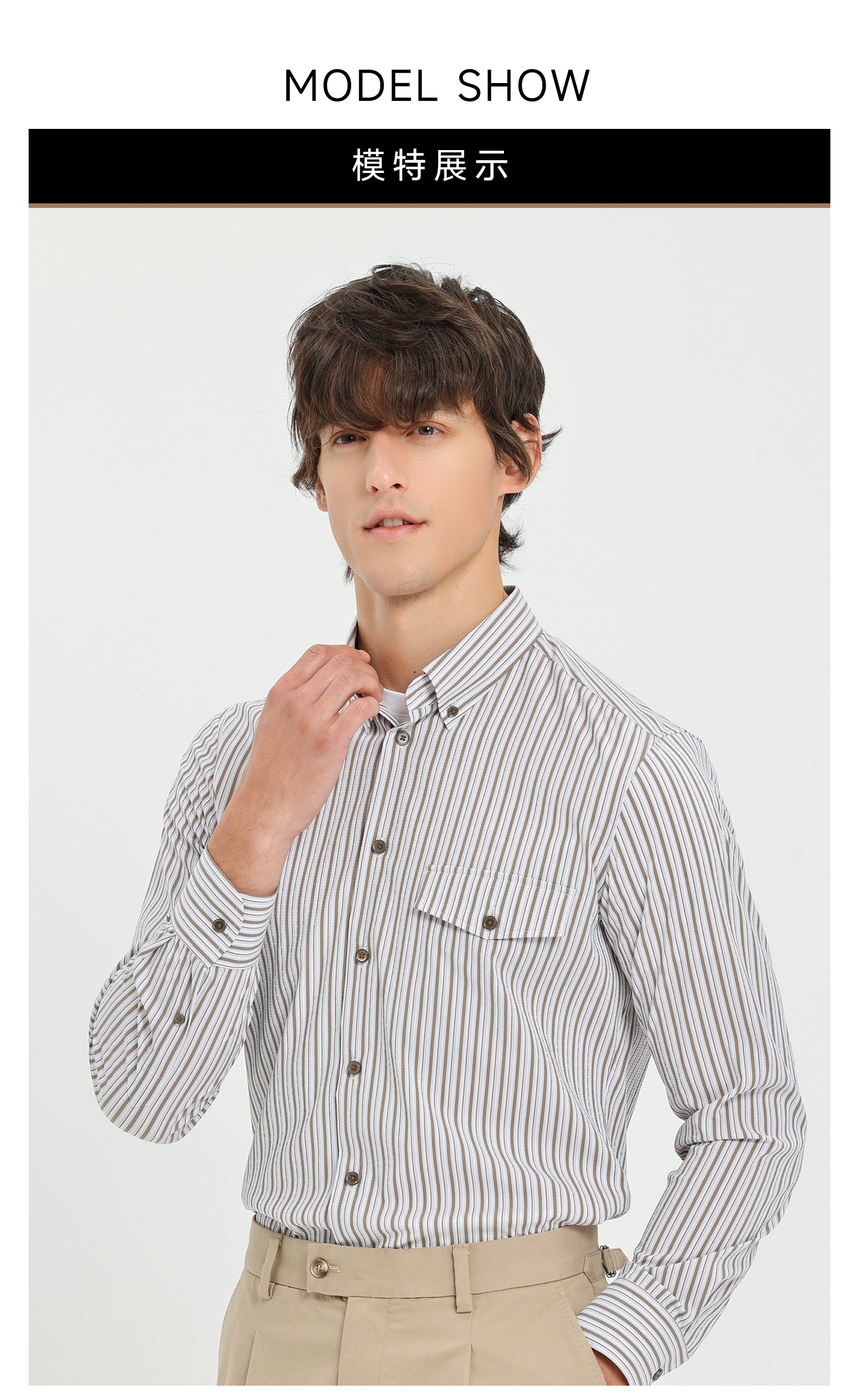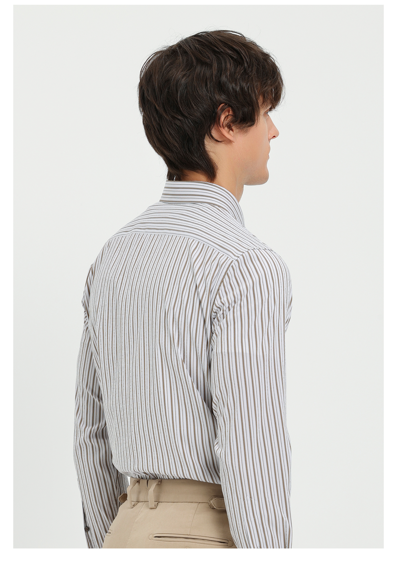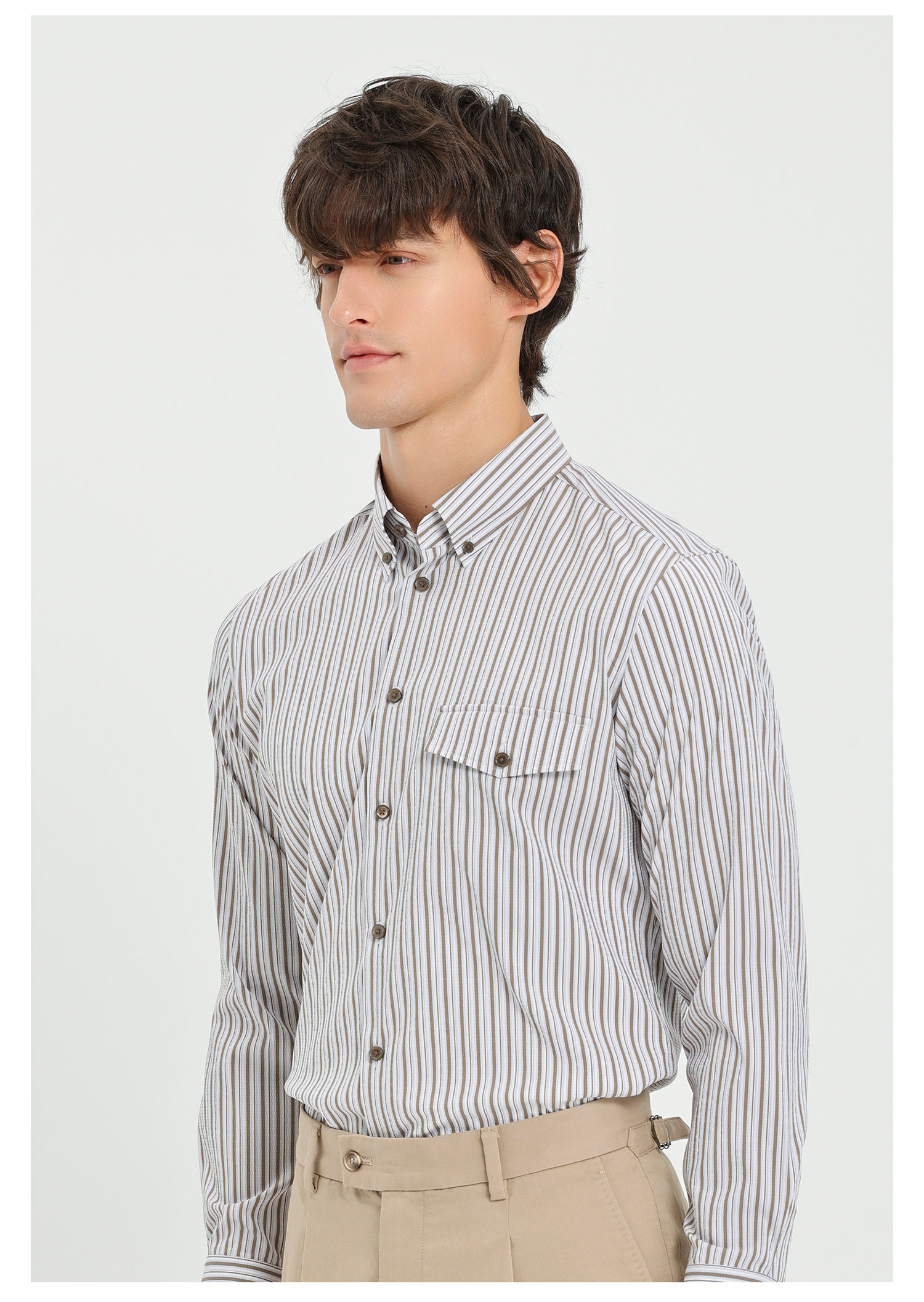 callisto卡其条纹微泡弹力混纺休闲长袖衬衫