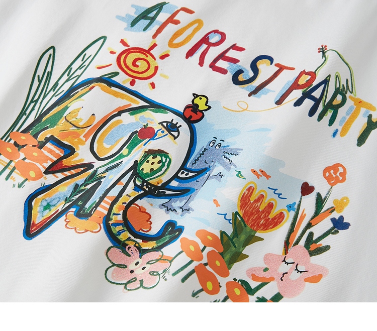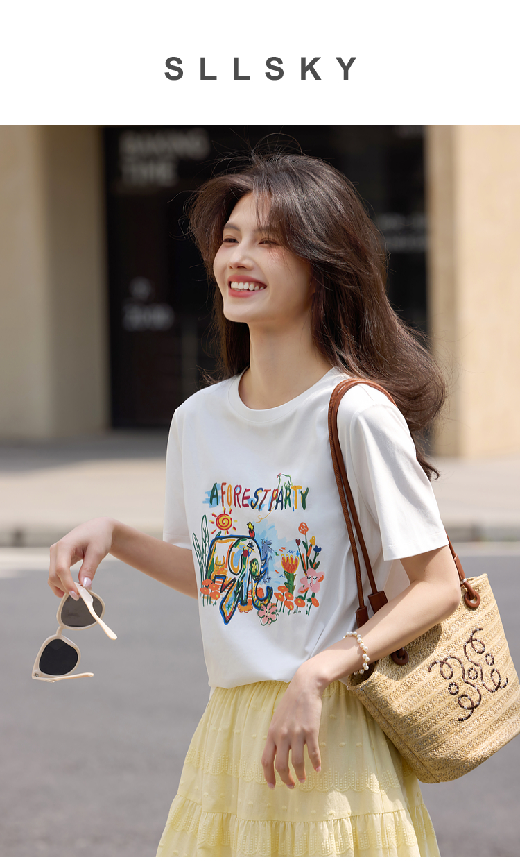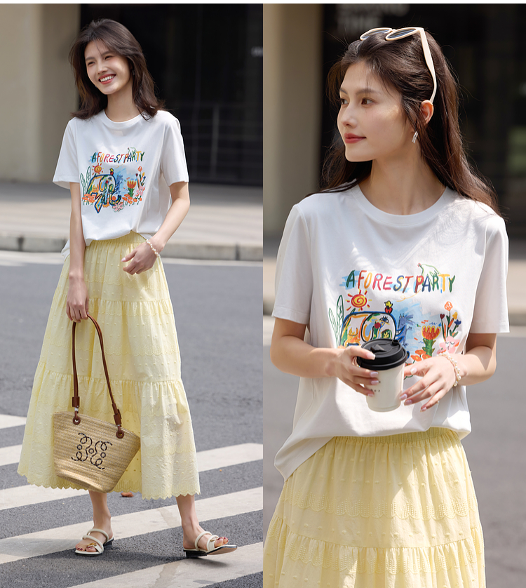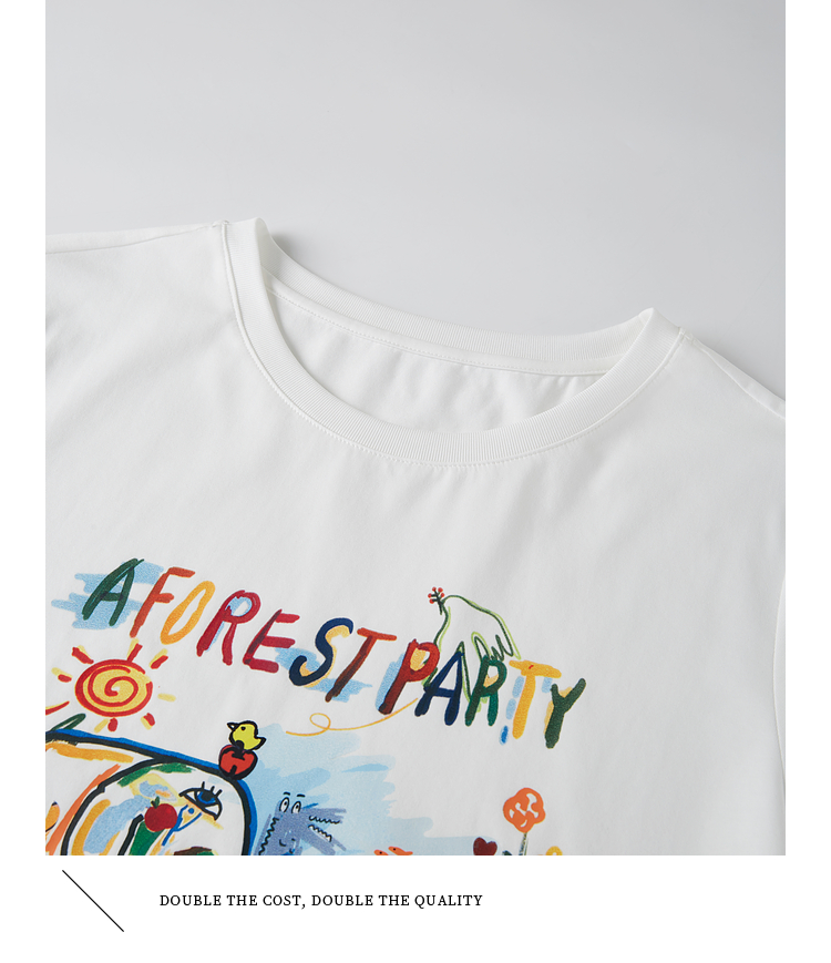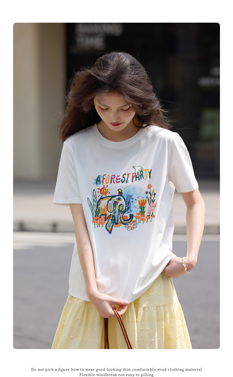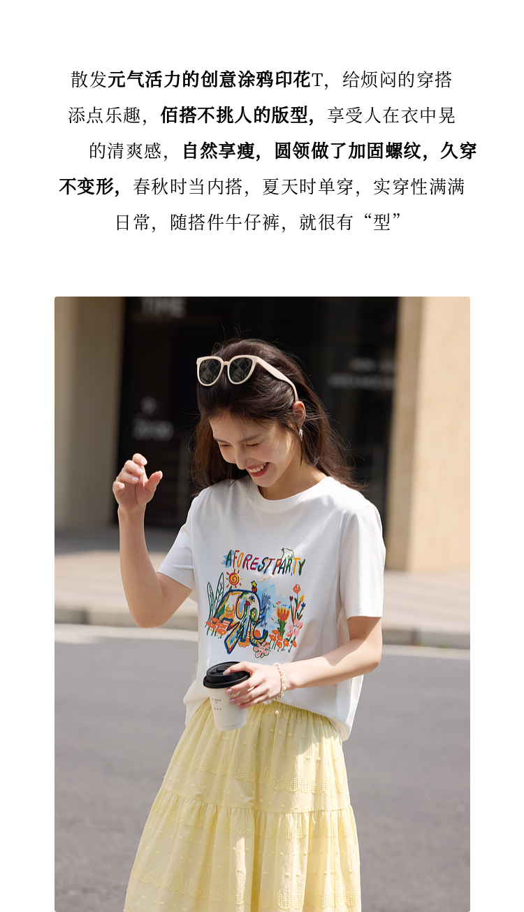 【专属特价】熙世界休闲涂鸦印花T恤女短袖宽松圆领正肩上衣ins潮2025夏日新款