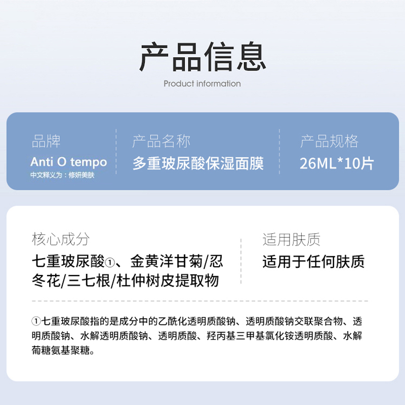 [新品] Anti O tempo AM-128 多重玻尿酸保湿面膜26ml*10片