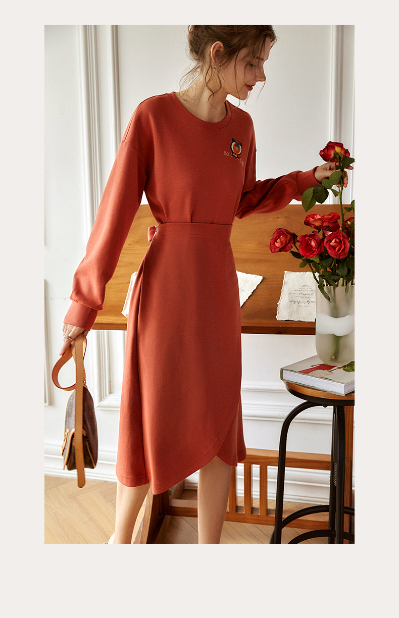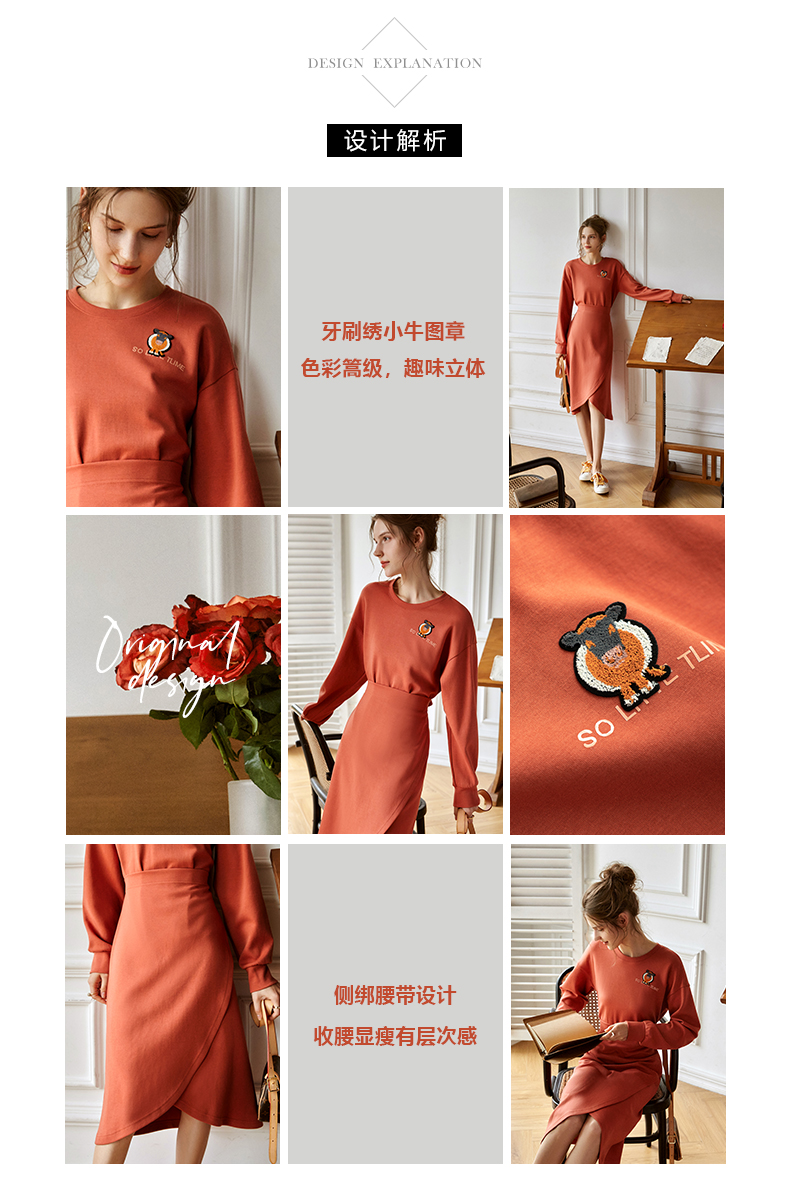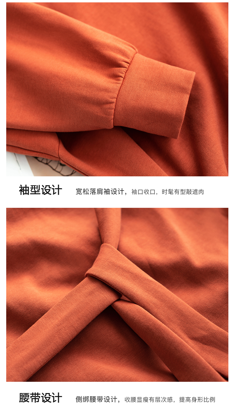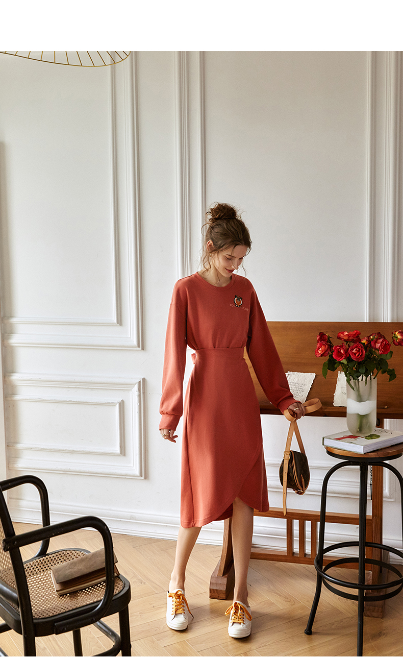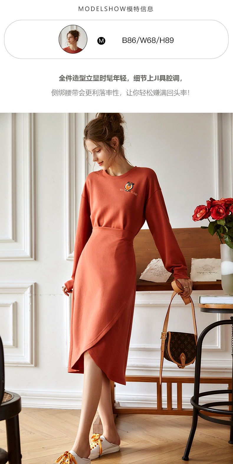 欧芮儿针织连衣裙女春秋2021新款高腰显瘦时尚不规则设计感卫衣裙