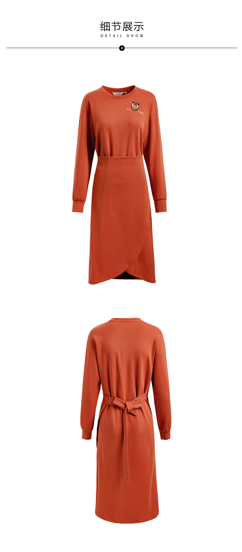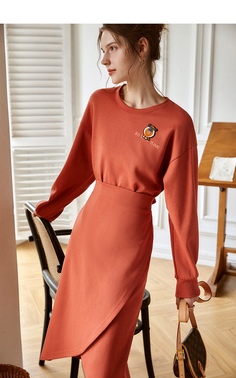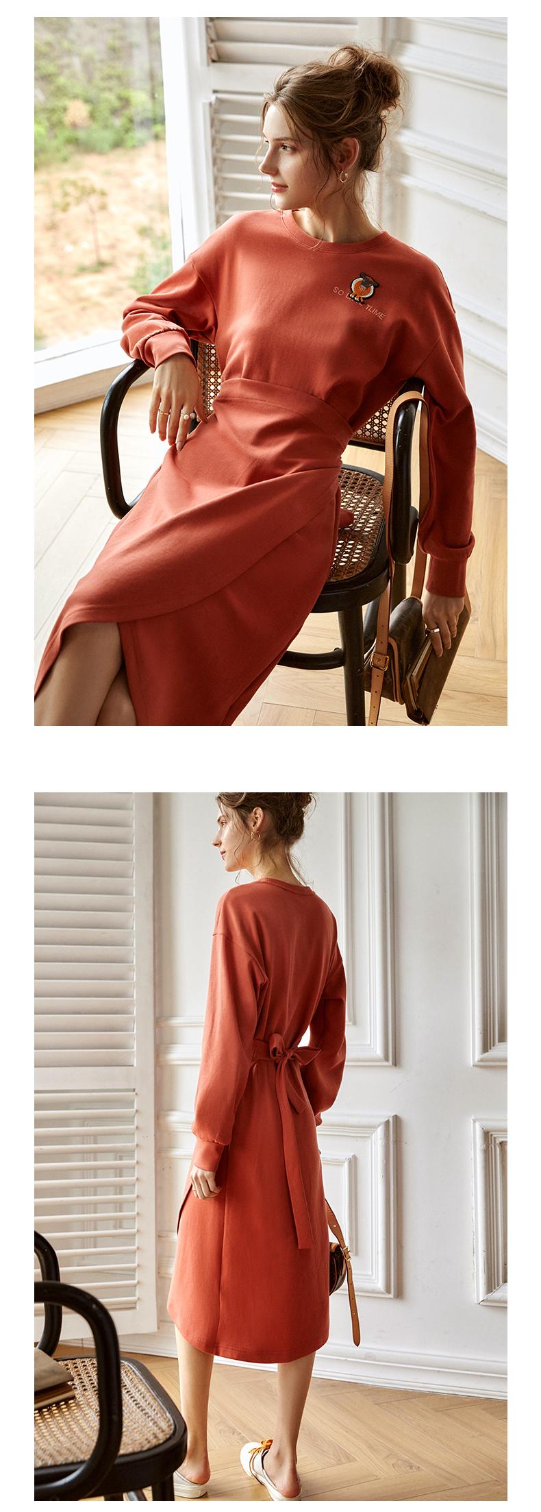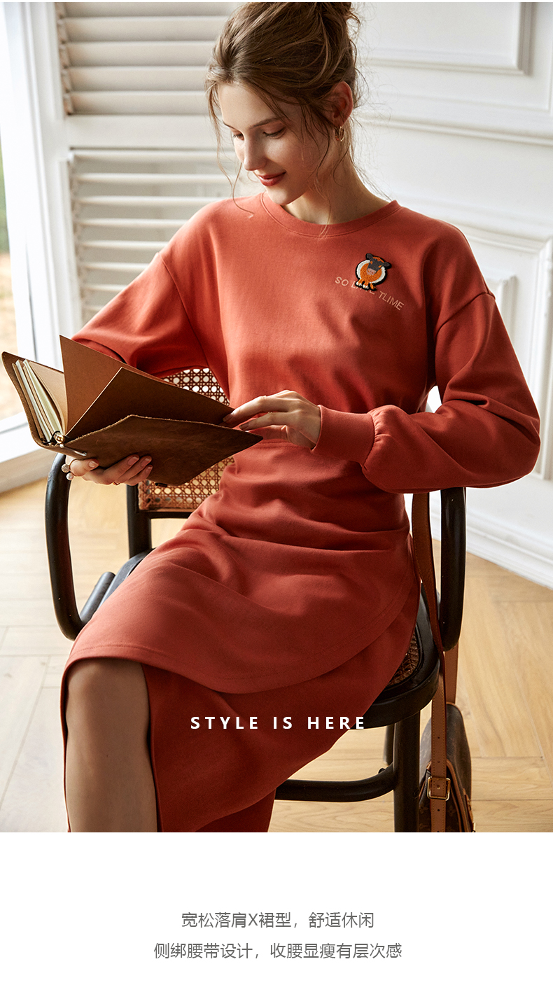 欧芮儿针织连衣裙女春秋2021新款高腰显瘦时尚不规则设计感卫衣裙