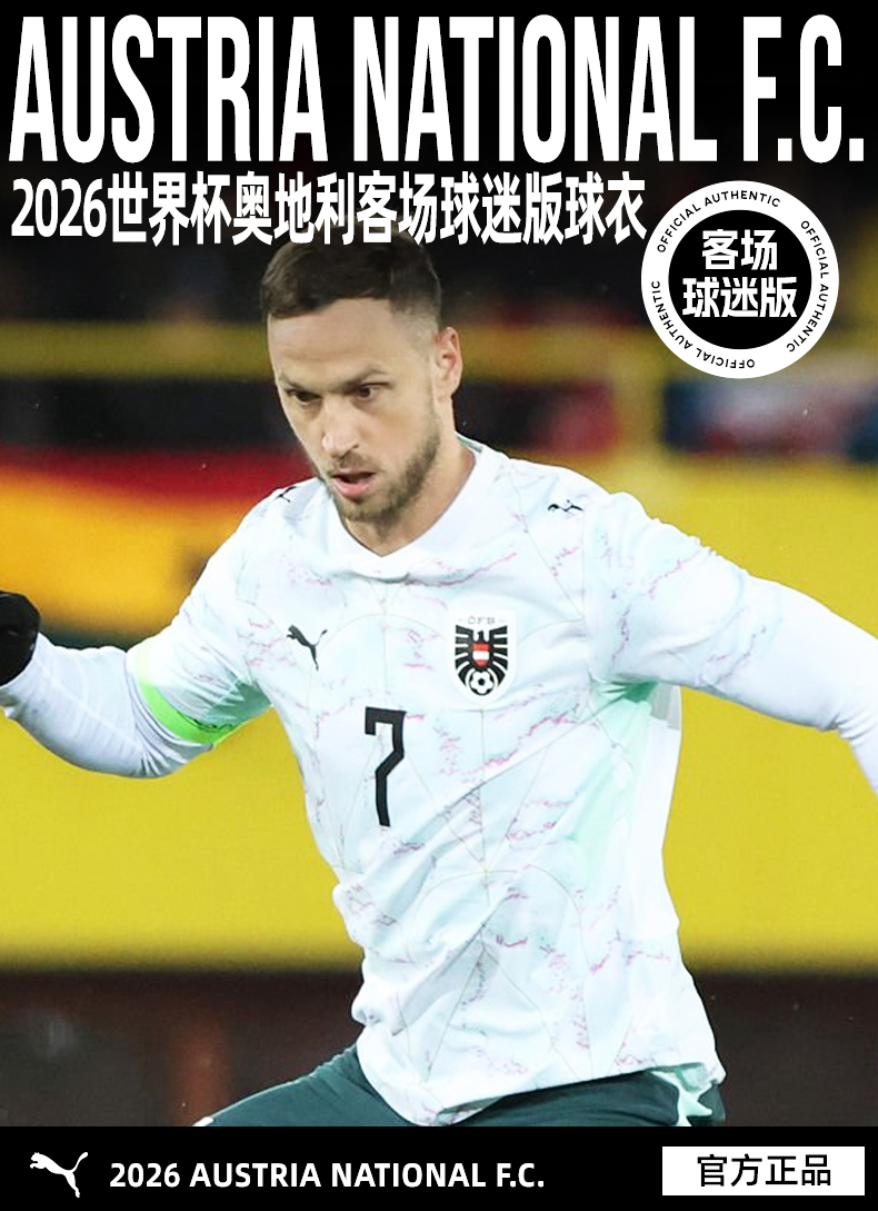 SFS彪马Puma世界杯2026奥地利客场球迷版球衣短袖足球服783207-02