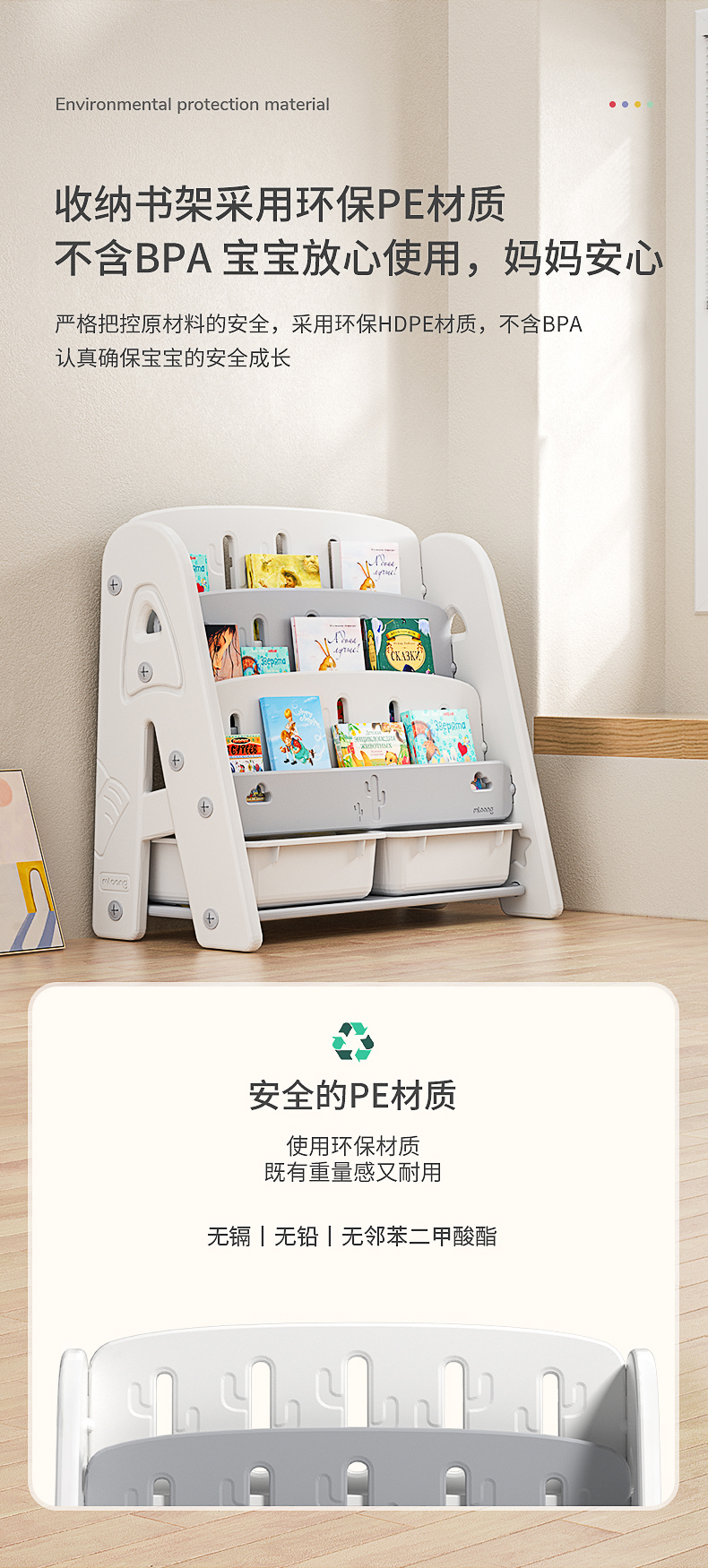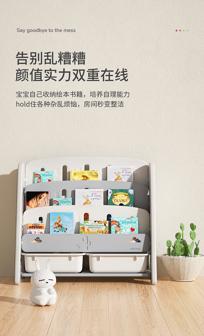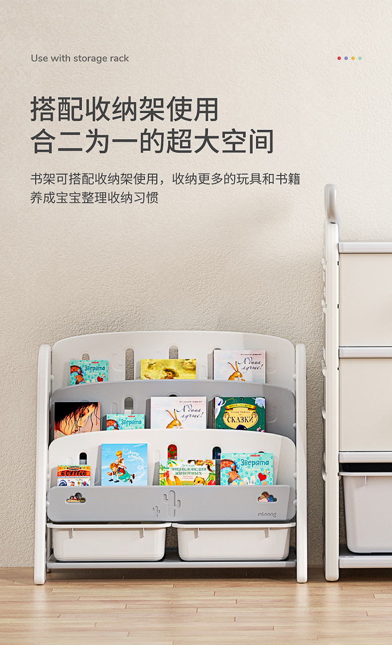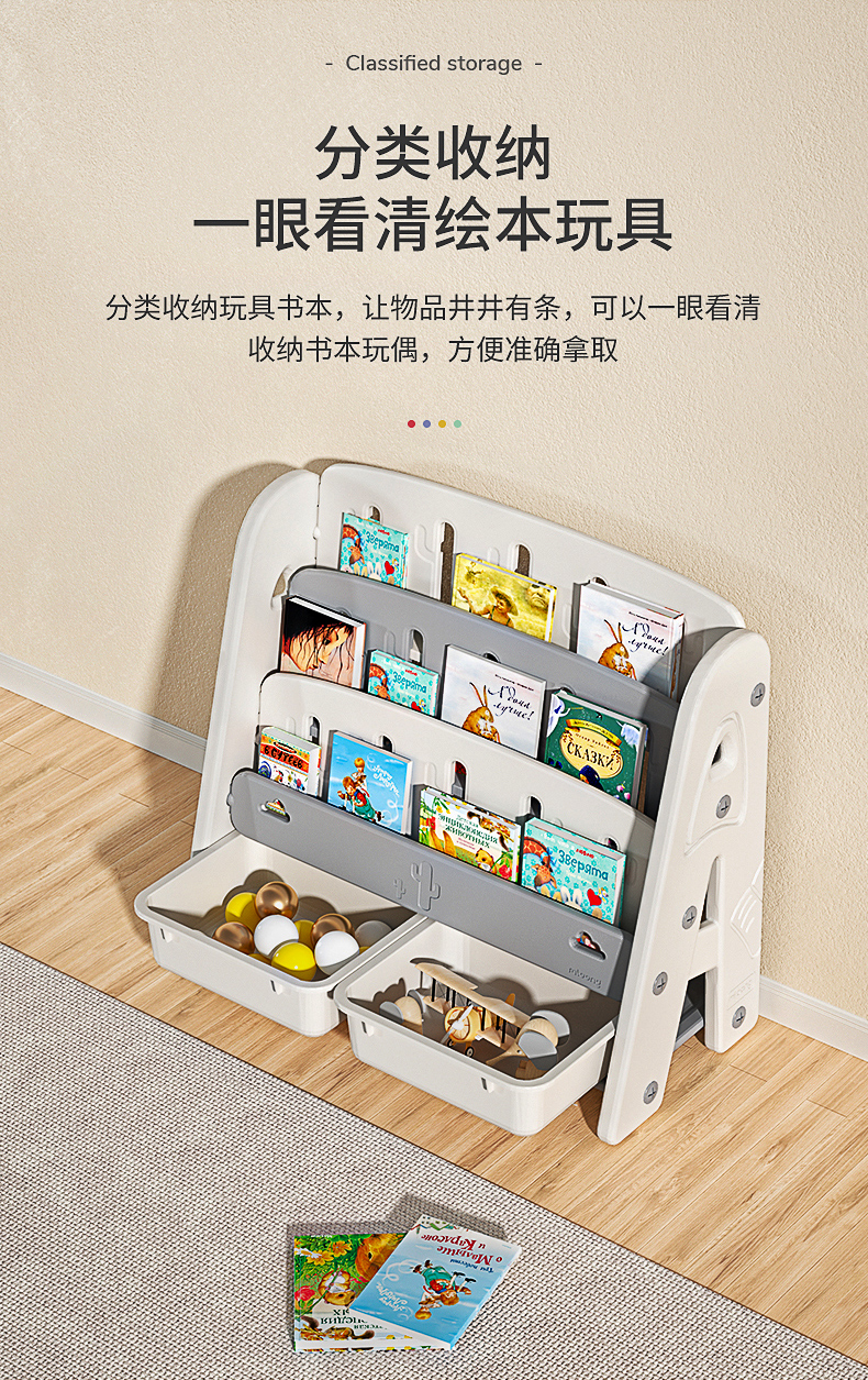 曼龙儿童书架绘本架宝宝玩具收纳架子幼儿园储物柜二合一婴儿书架