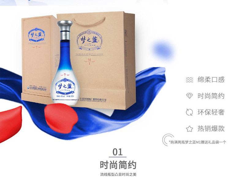 洋河梦之蓝m1-45度-浓香型白酒-500ml-多规格可选