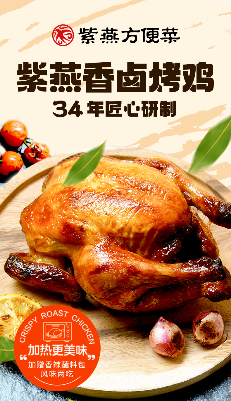 紫燕百味鸡香卤烤鸡590g手撕鸡烧鸡熟食五香鸡肉零食小吃