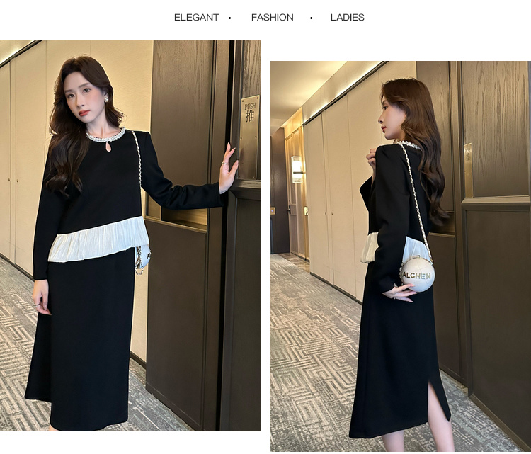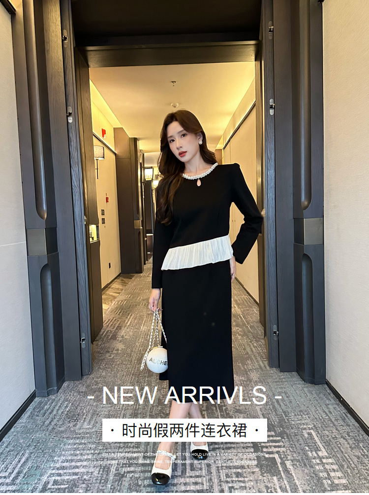 奢姿大码女装2025秋冬减龄镂空两件套胖妹妹荷叶边拼接时尚套装9943991161