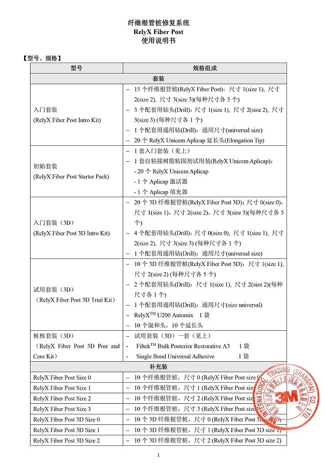 纤维根管桩修复系统 RelyX Fiber Post(3M 纤维根管桩修复系统 / 根管纤维桩 10支*1盒 bc)