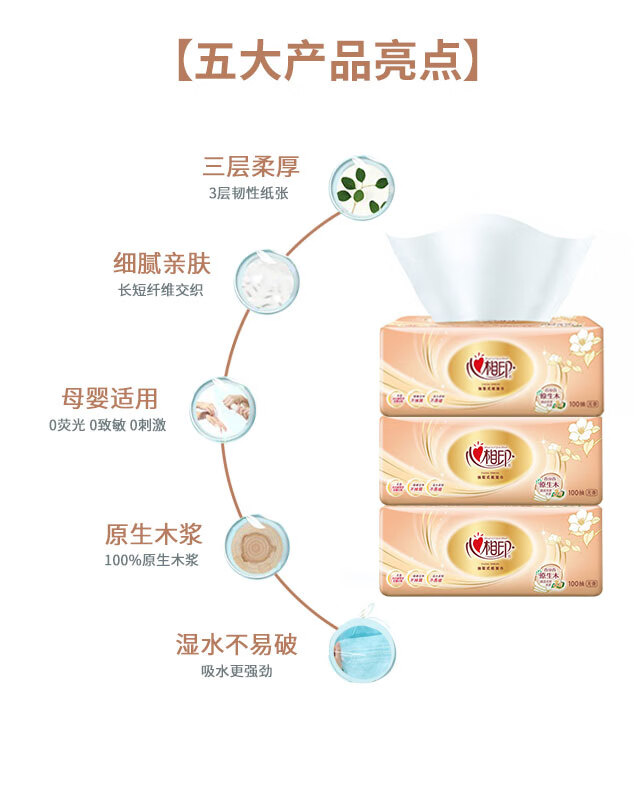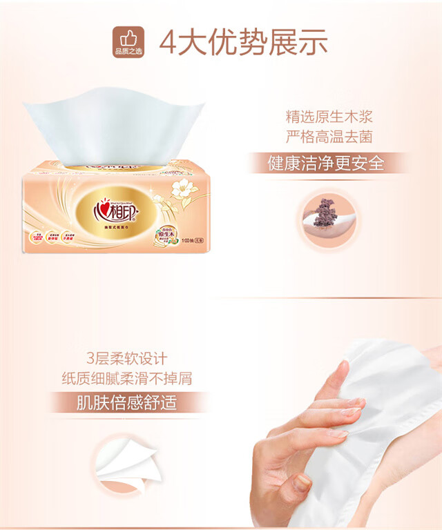【新人秒杀】心相印金典抽纸4包装 原生木浆 三层柔厚 细腻亲肤