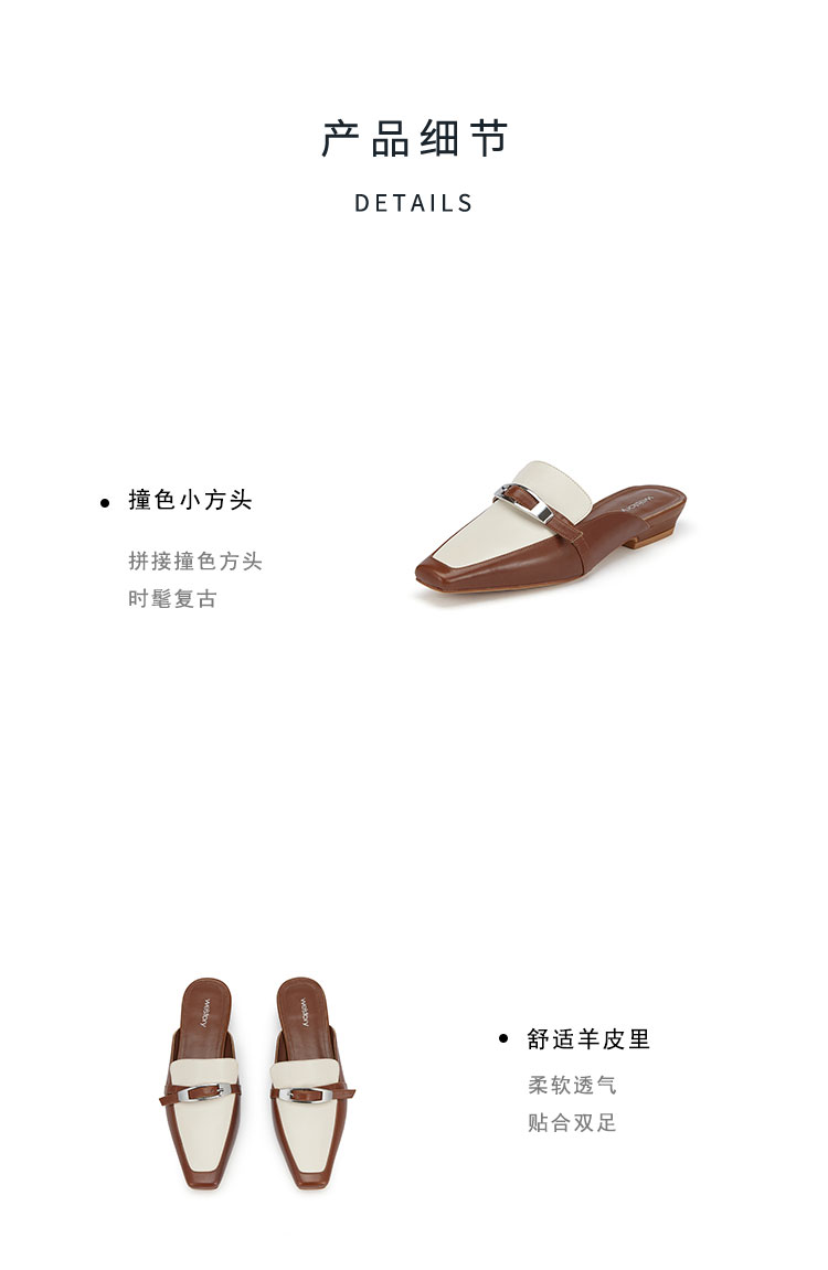 westory2024春季新款法式全优雅舒适半拖鞋后空鞋穆勒拖鞋S24AH57601