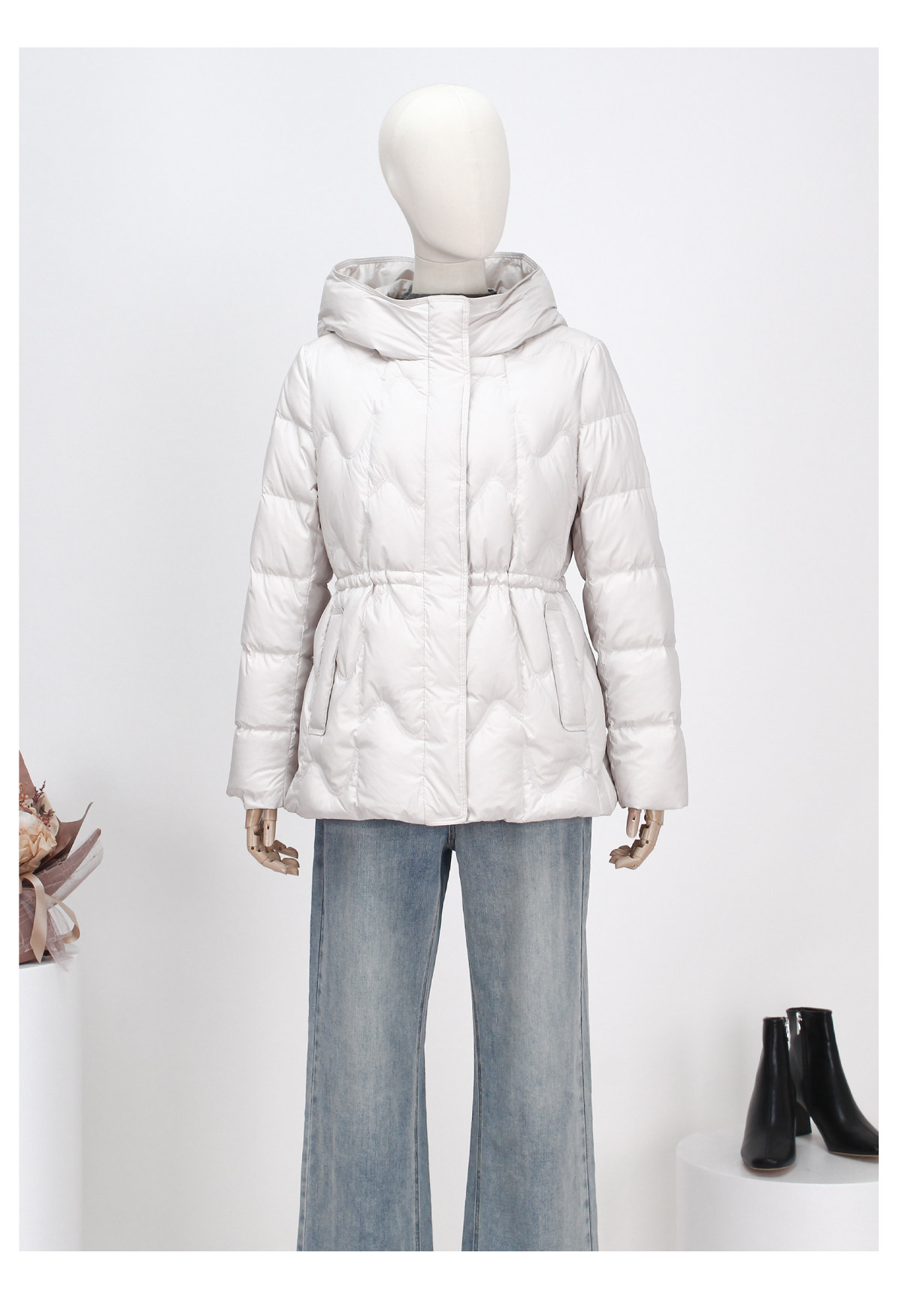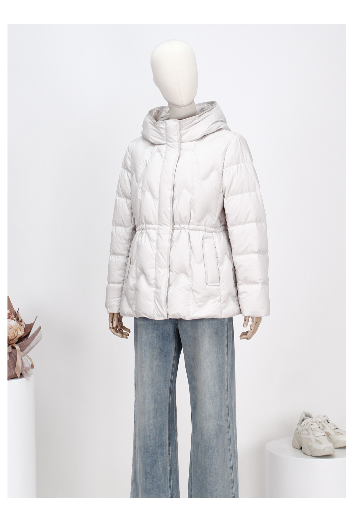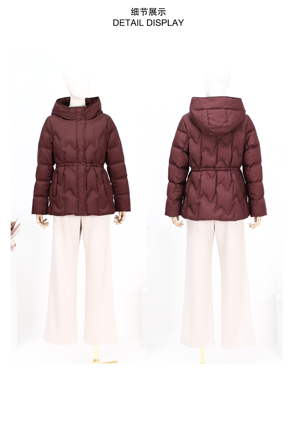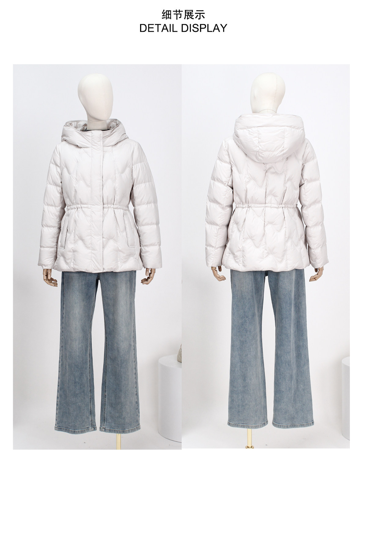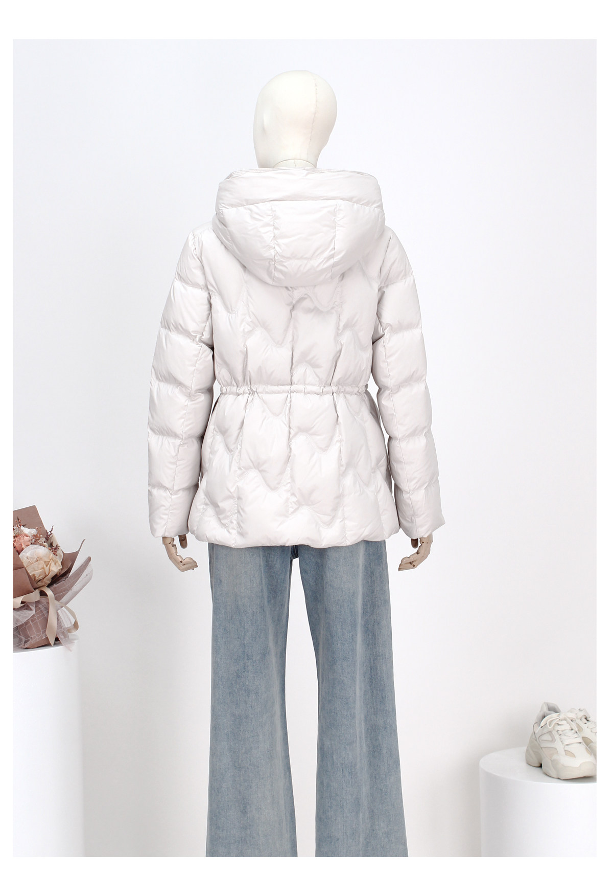 FOCALS新款时尚休闲绗缝收腰连帽白鸭绒短款羽绒服外套FRW8D071