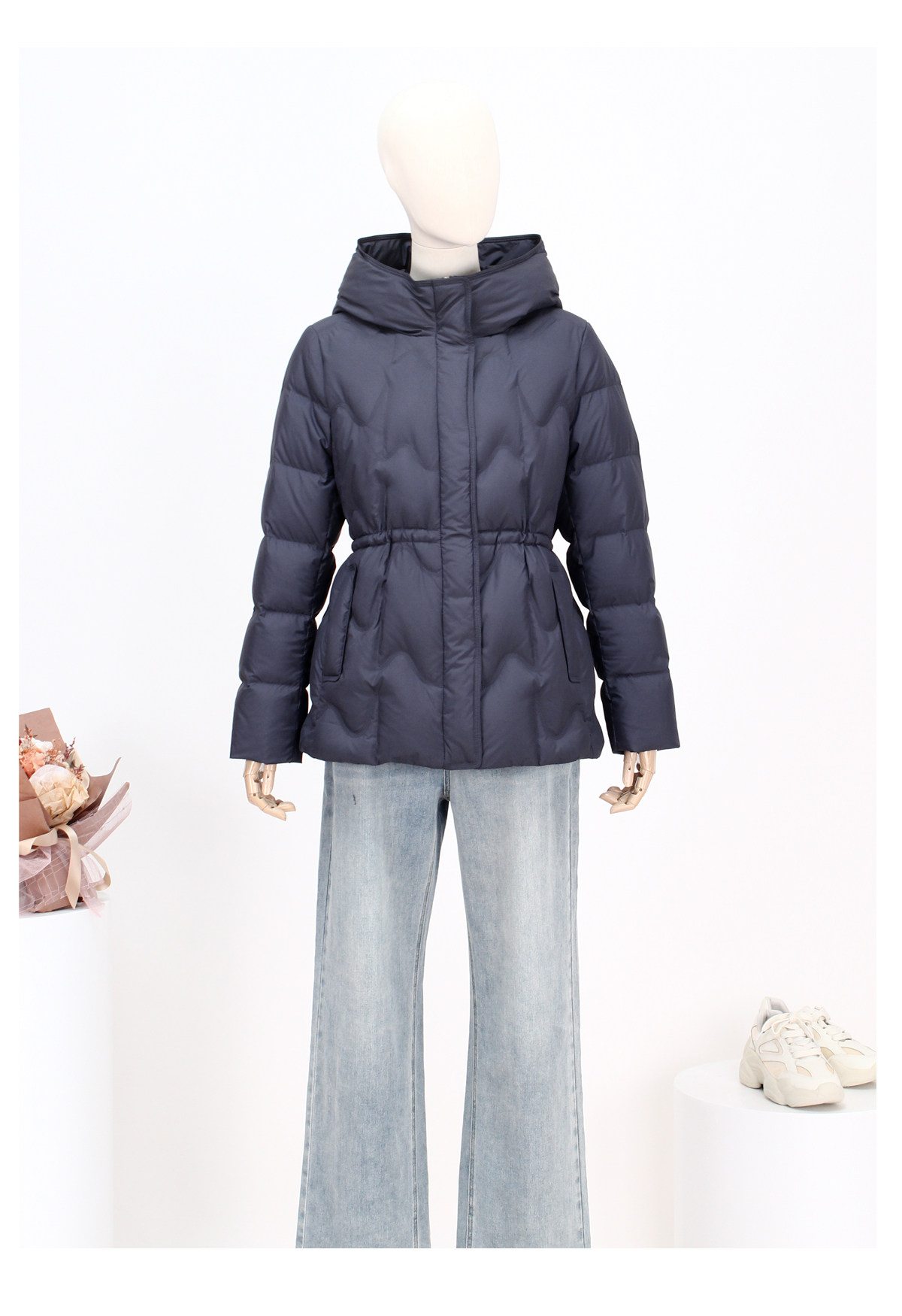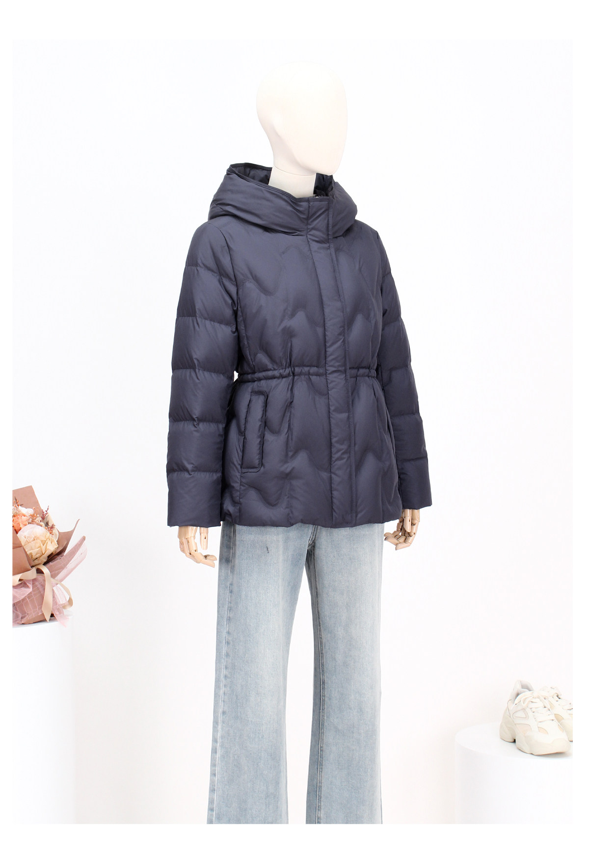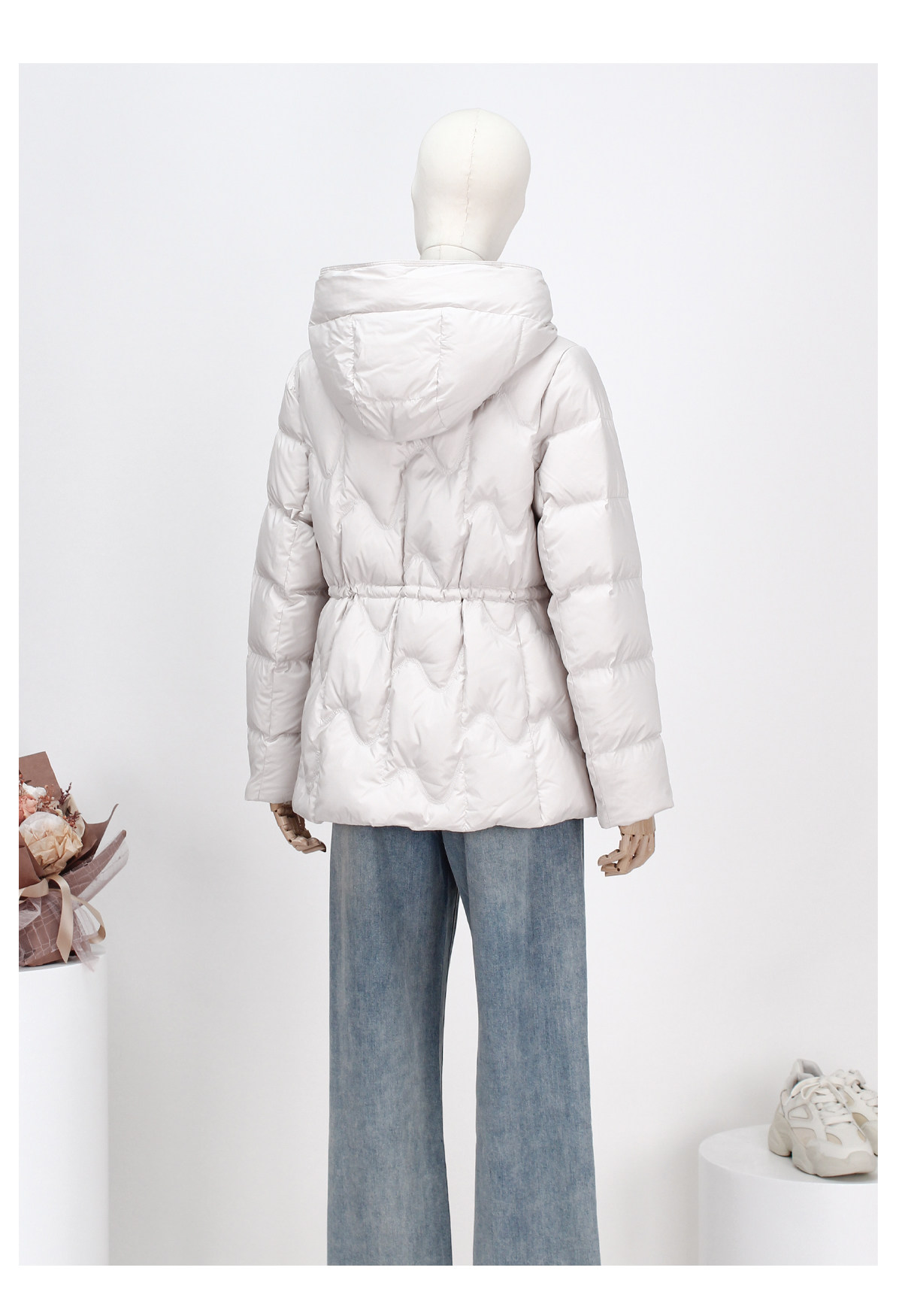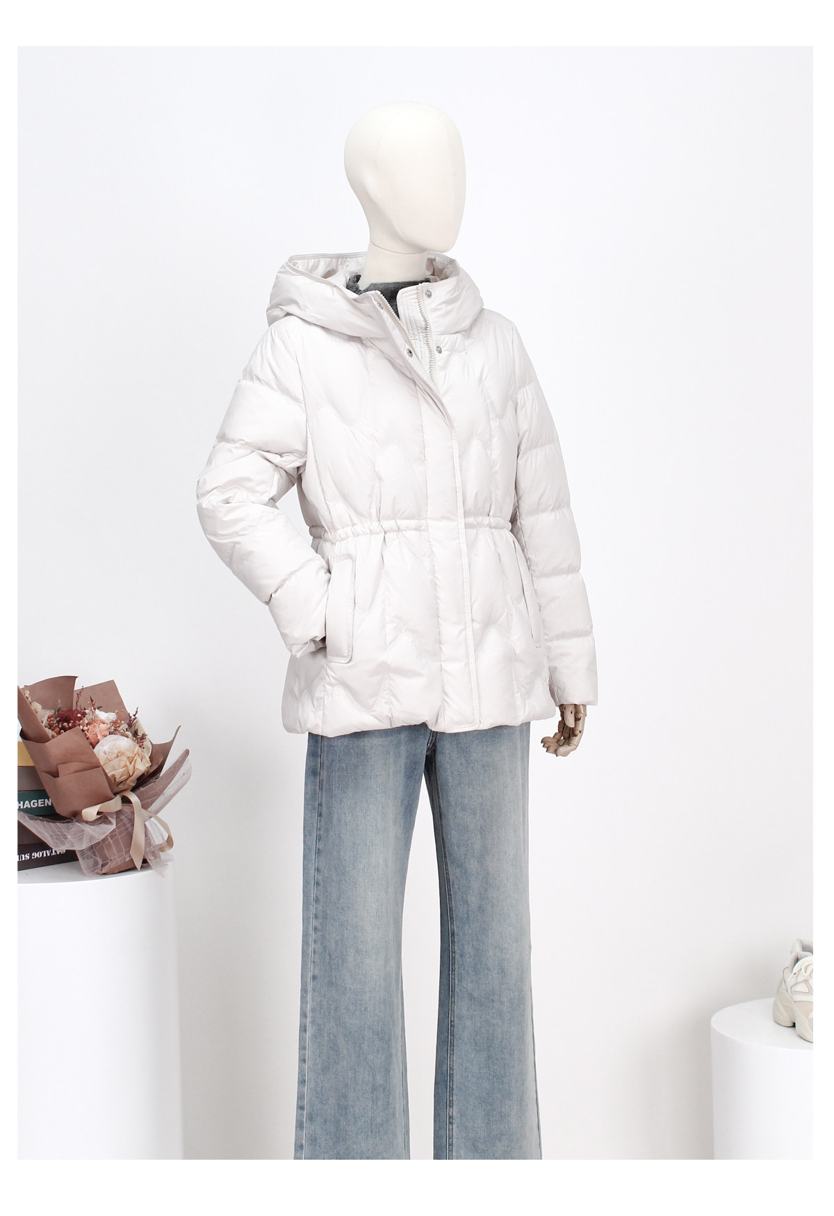 FOCALS新款时尚休闲绗缝收腰连帽白鸭绒短款羽绒服外套FRW8D071