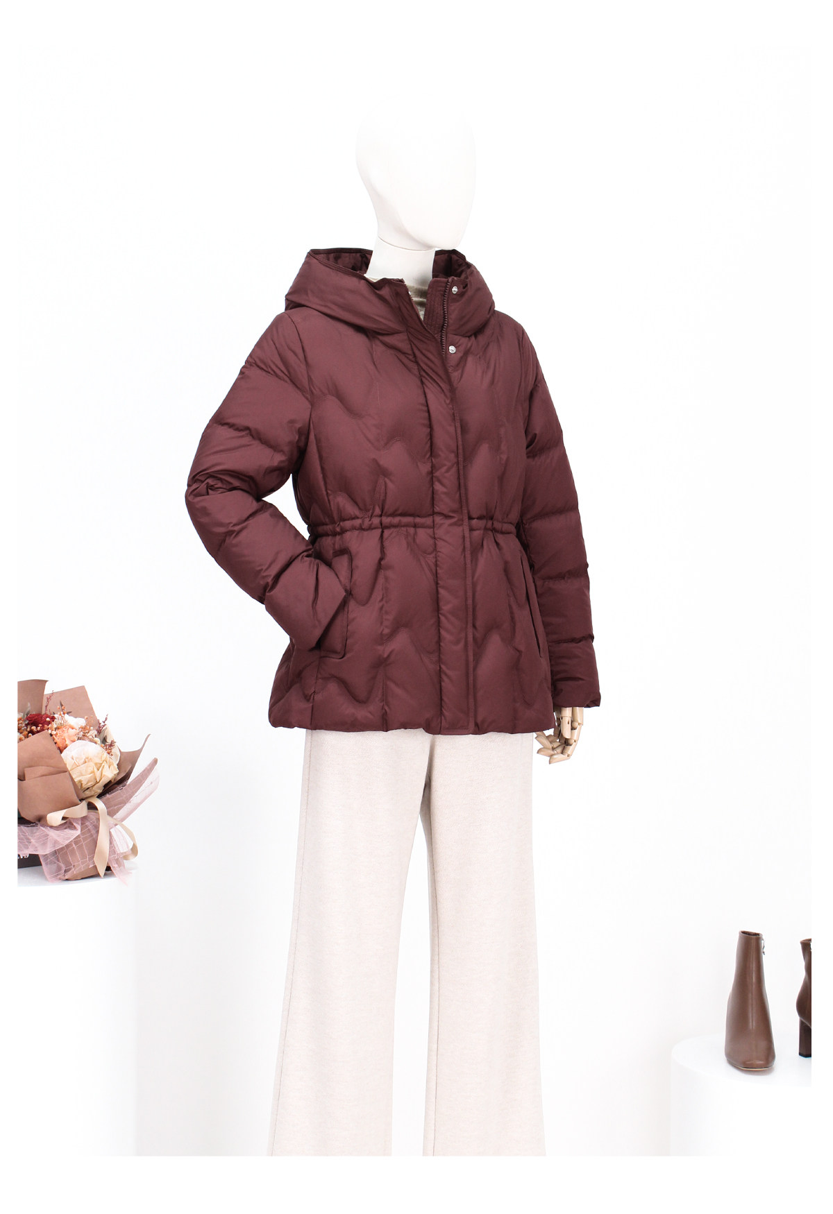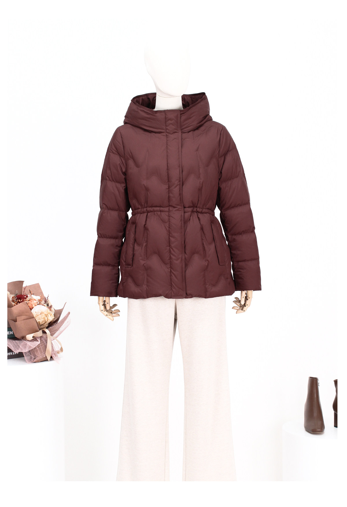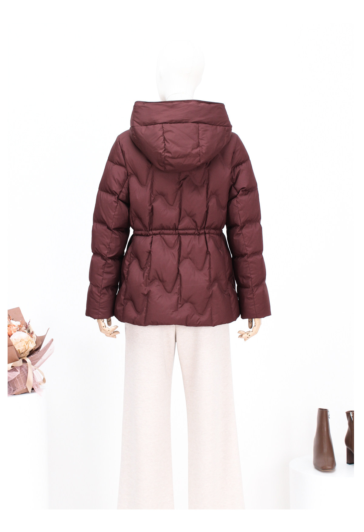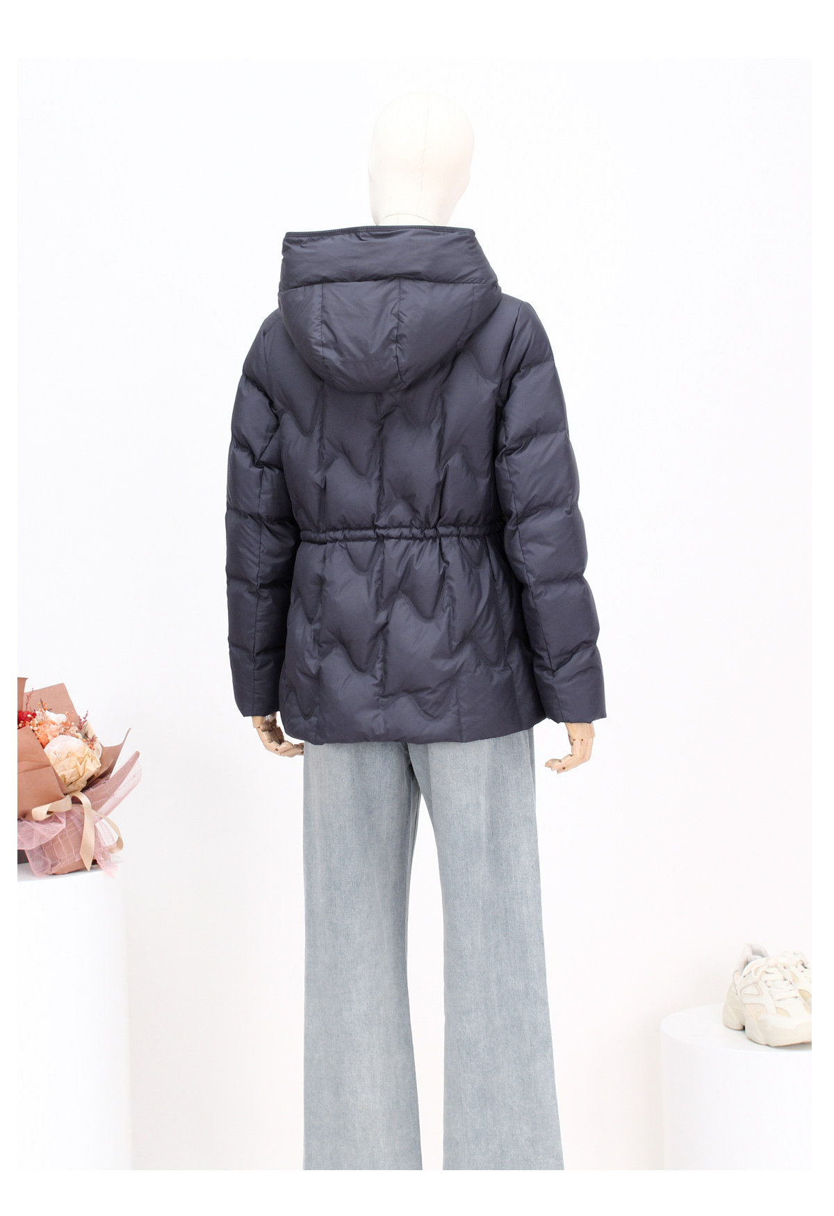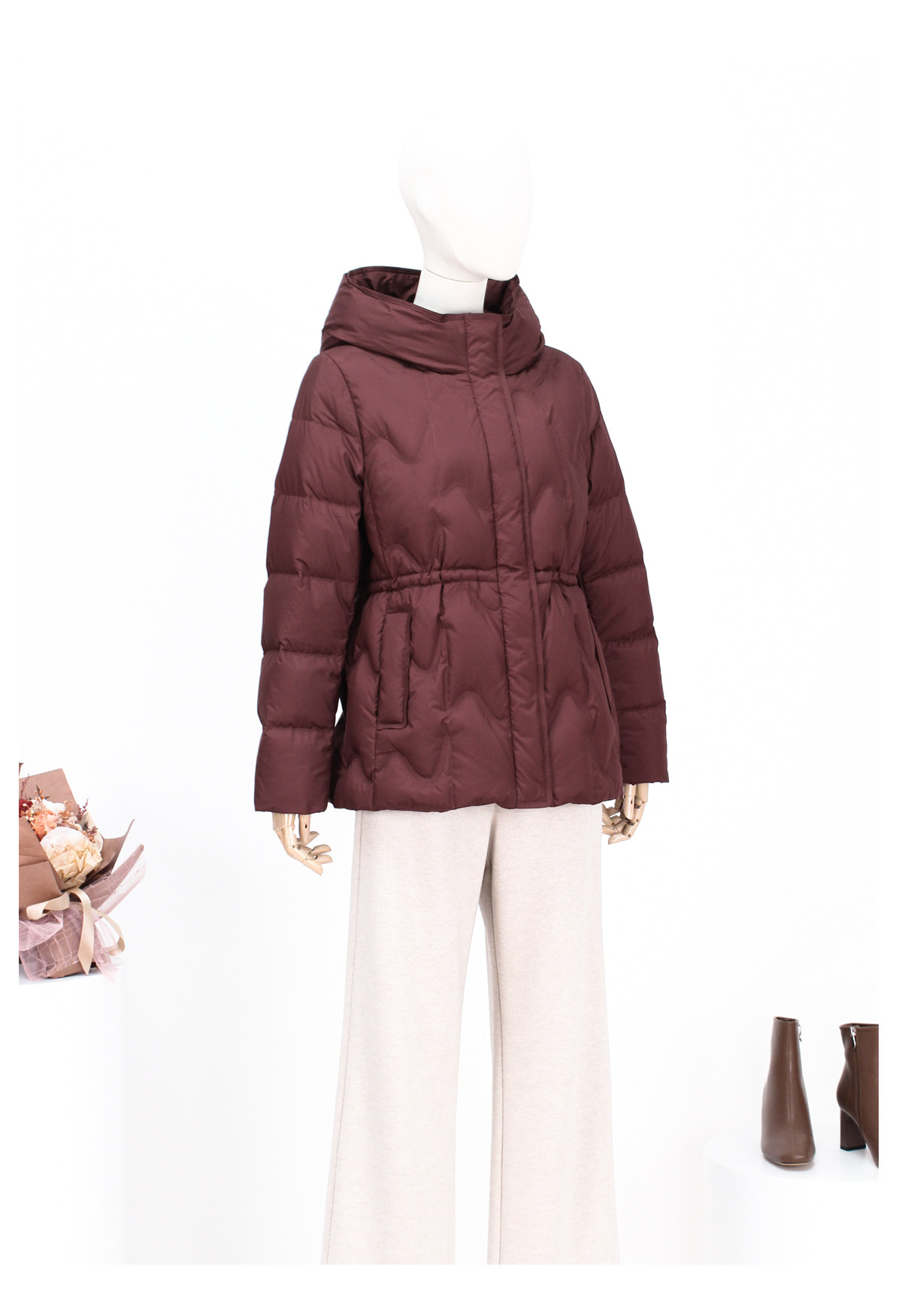 FOCALS新款时尚休闲绗缝收腰连帽白鸭绒短款羽绒服外套FRW8D071