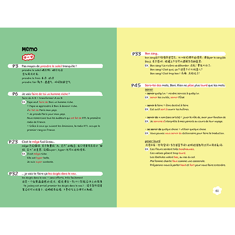 《兔子波尼》由中文导读、30个法语原文小故事和中文简注、备忘录(Memo)三部分组成。