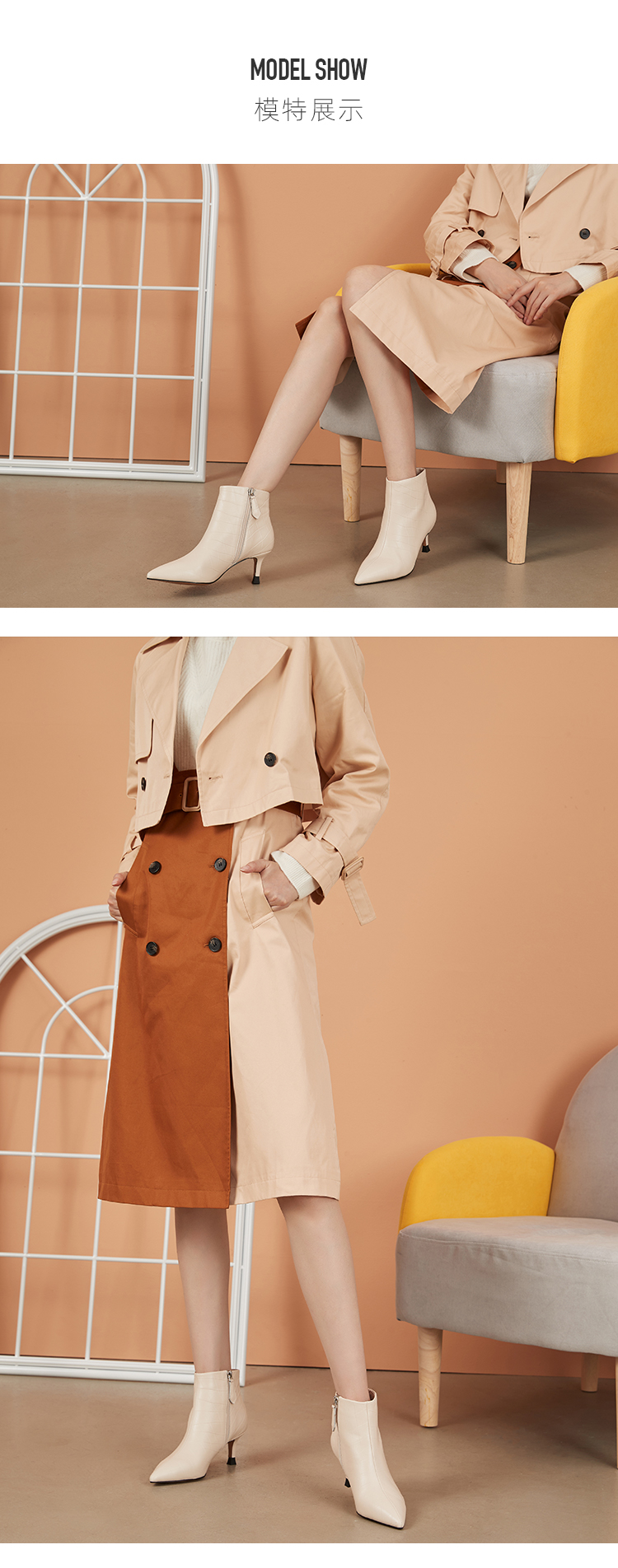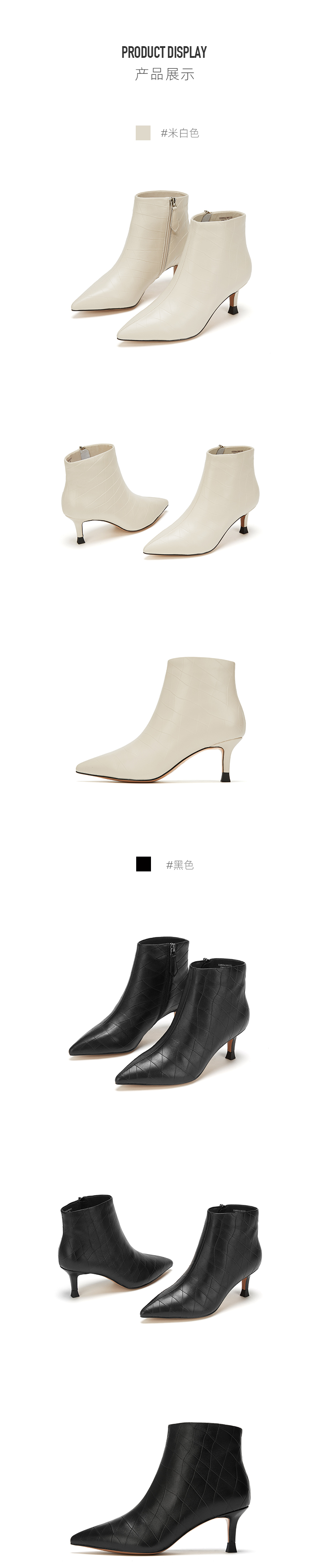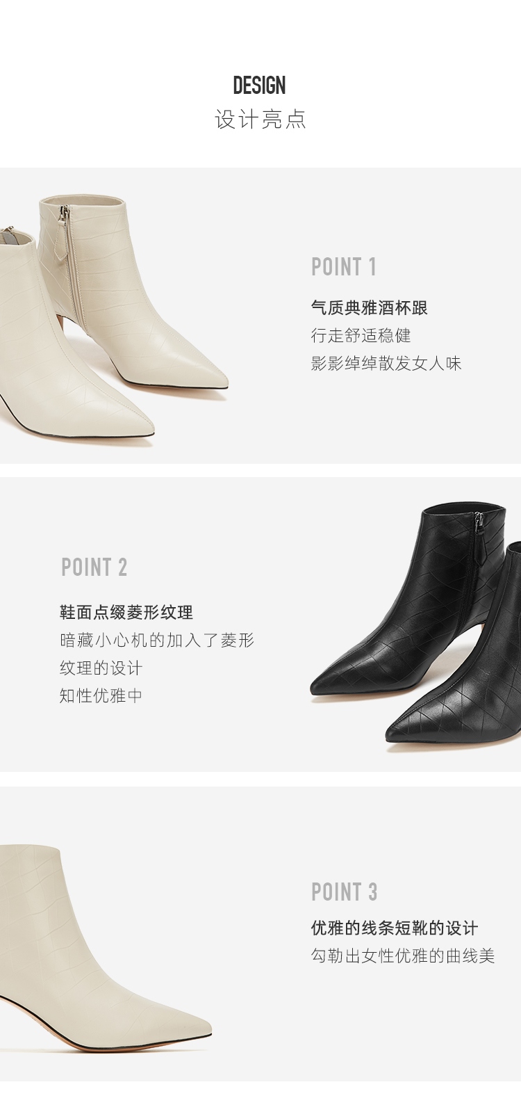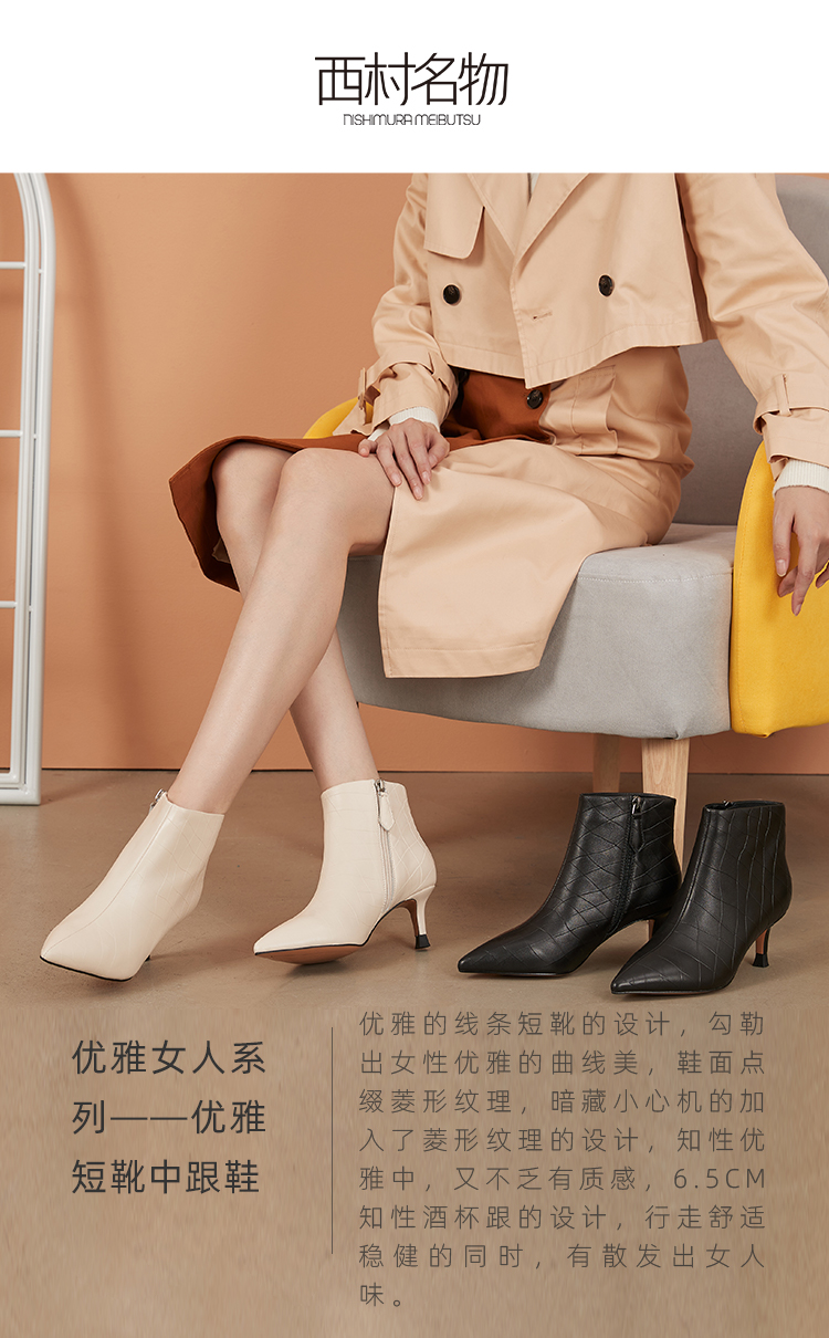 西村名物2020冬季新款羊皮马丁靴酒杯跟菱形纹理优雅短靴T20DS41861