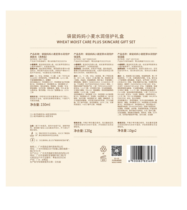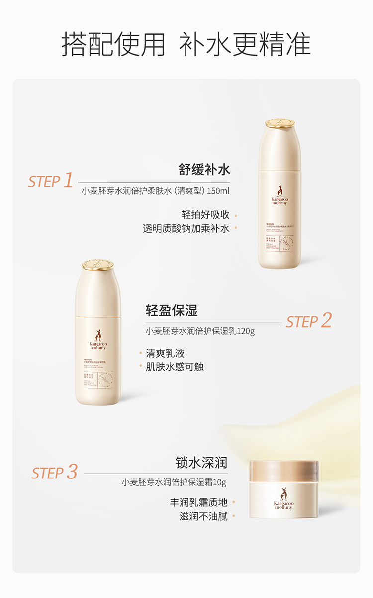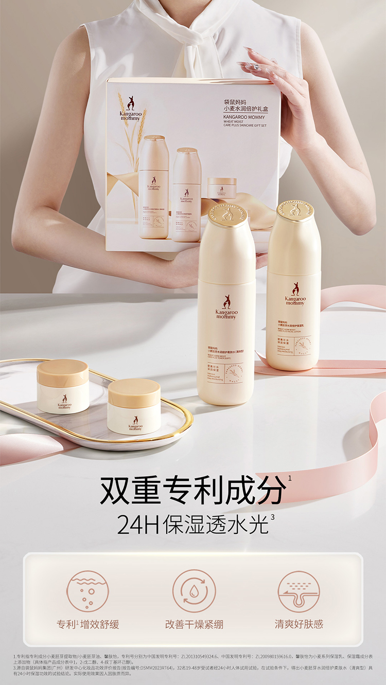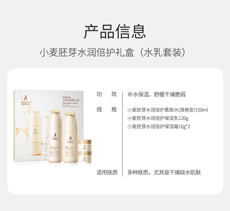 【小麦水乳2件套】24H小时保湿 舒缓干燥肌肤 小麦柔肤水150ml+小麦保湿乳120g+小麦保湿霜10g*2