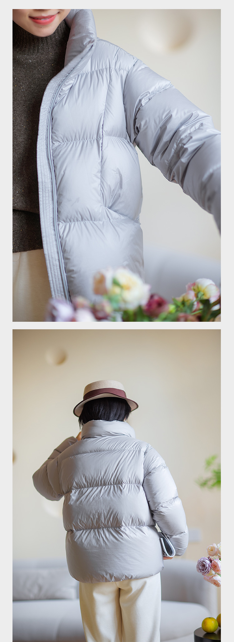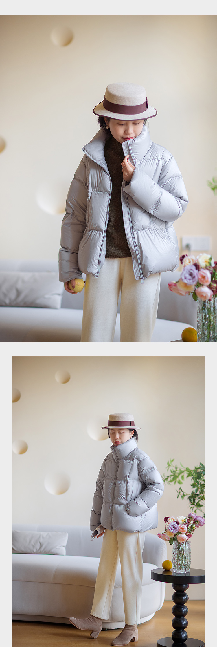 松软似棉花糖90白鹅绒立领短款面包羽绒服