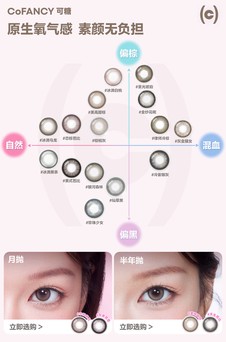 【月抛上新】COFANCY可糖联名月抛美瞳2片装大小直径三明治美瞳【下单即赠美瞳伴侣盒+护理液60ml*】