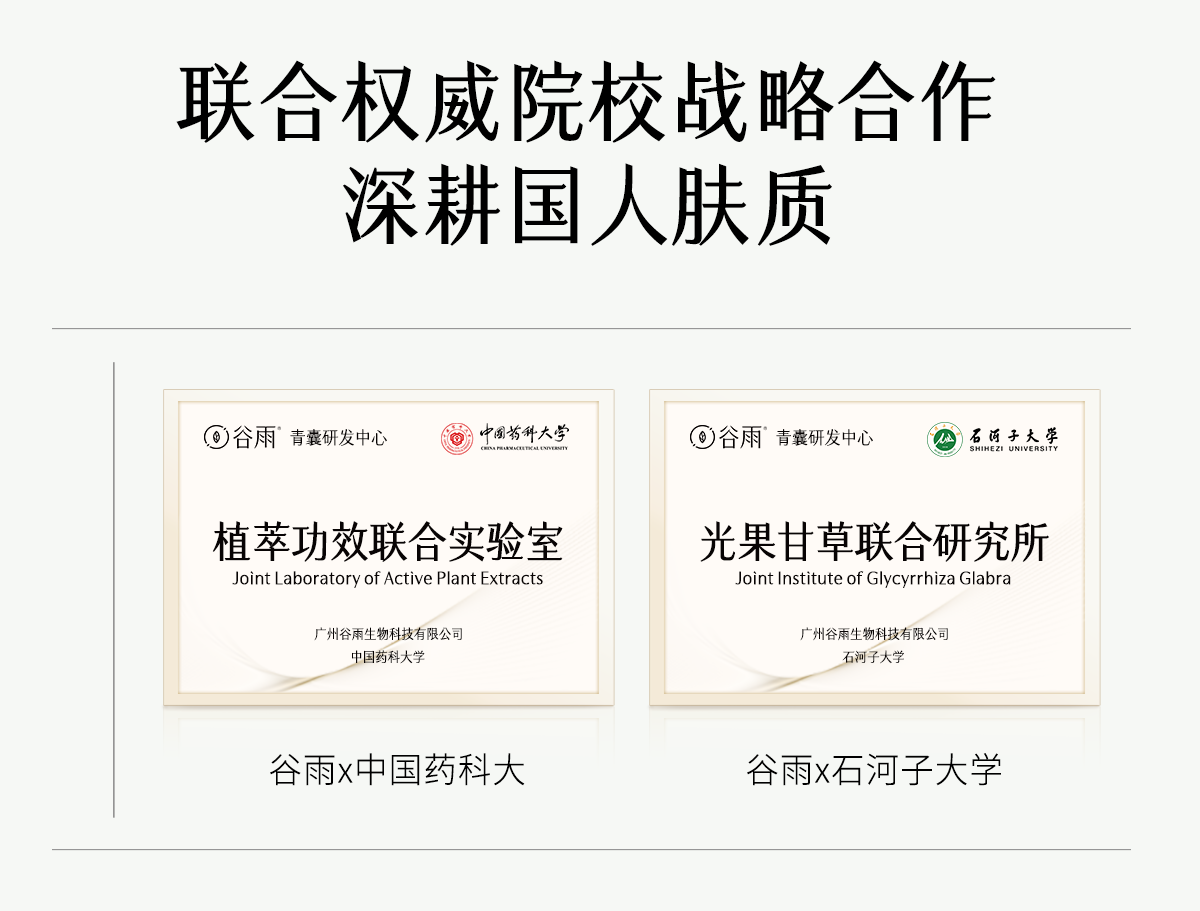 - 谷雨,更适合中国人肤质的植萃美白。专研中华珍稀美白植萃光甘草定,深入研究中国人肤质特点,打造中国女性独有的仙气白。