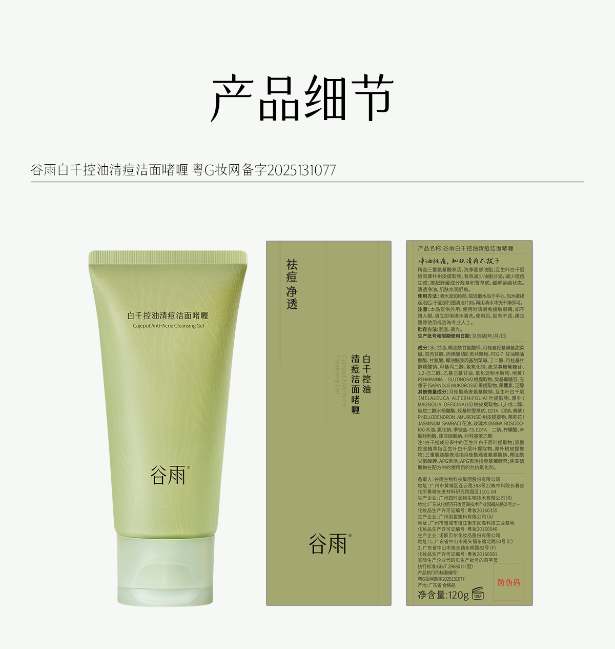 【双十二狂欢节】谷雨白千控油清痘洁面啫喱120g 控油净澈