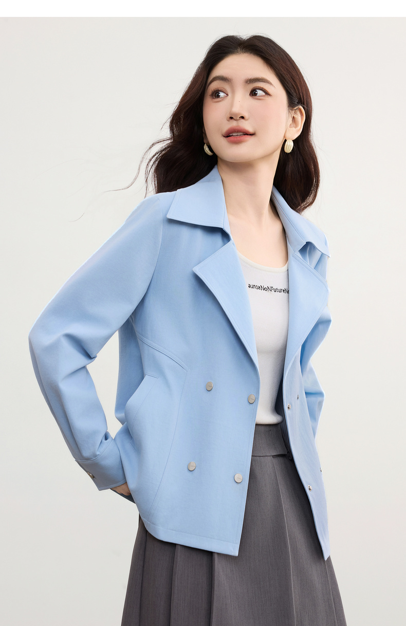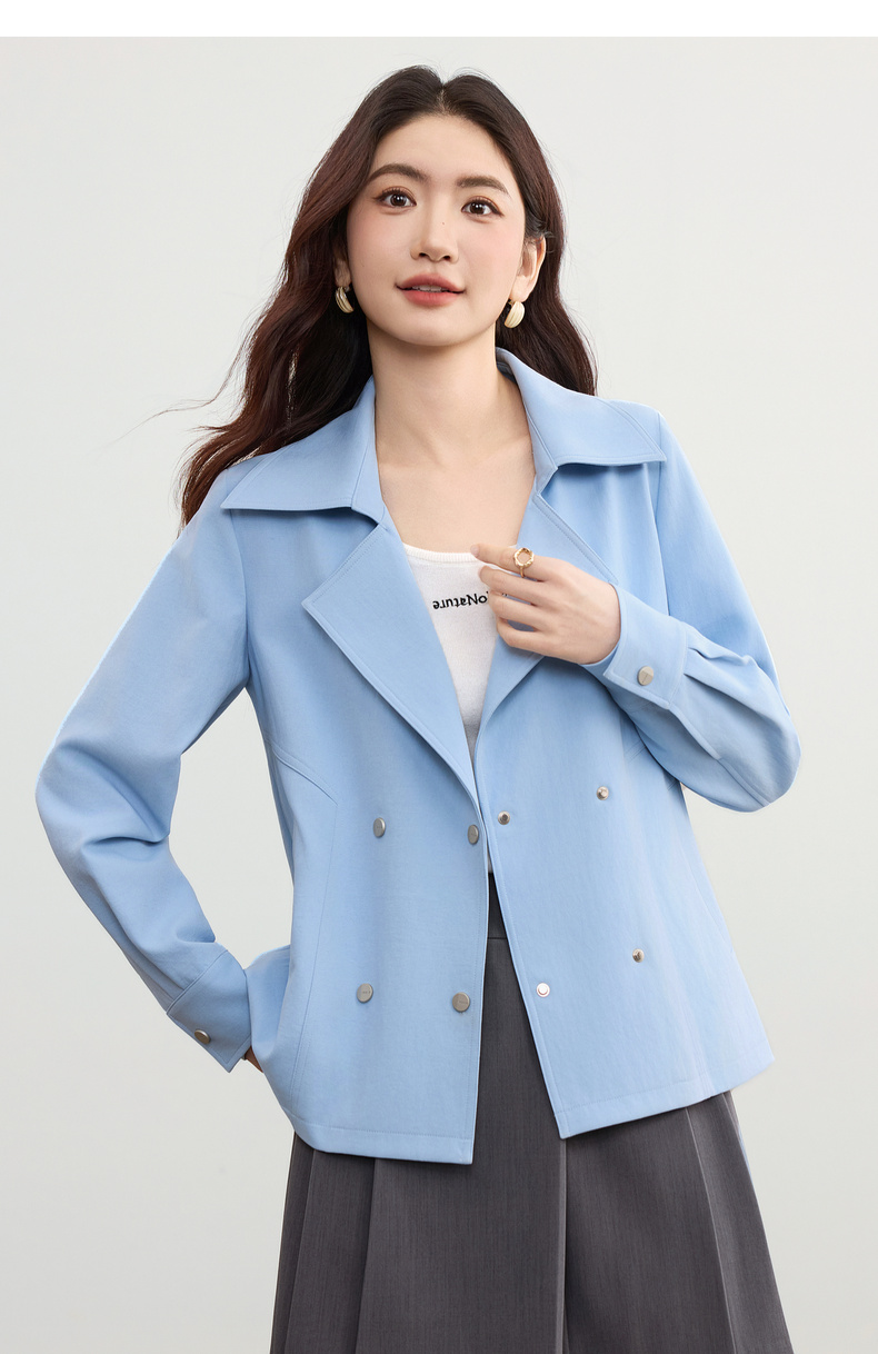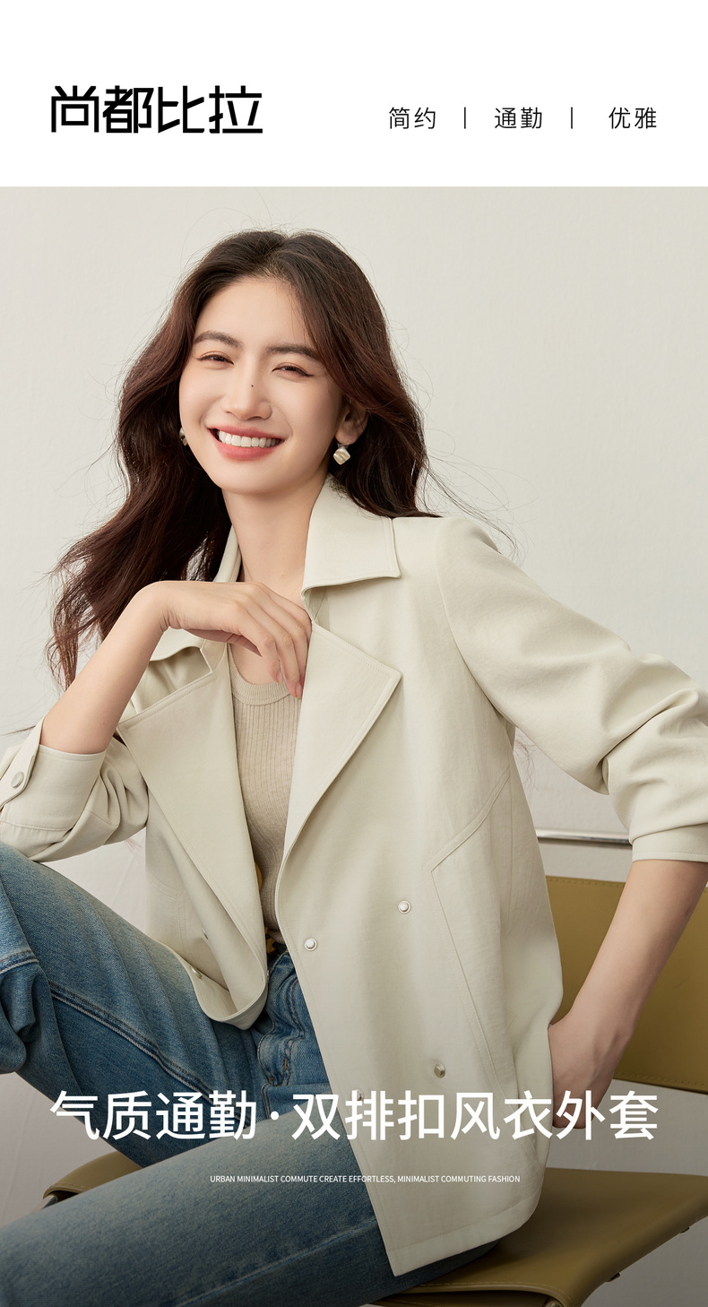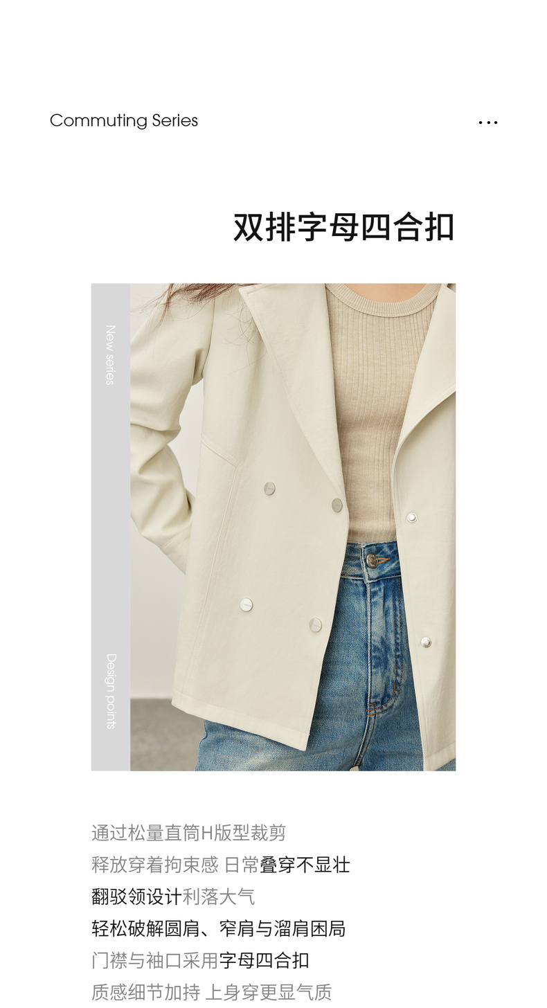 【内购】【双排扣】都市通勤气质翻驳领门襟字母四合扣长袖风衣外套-153WB2255