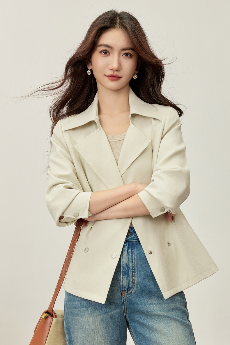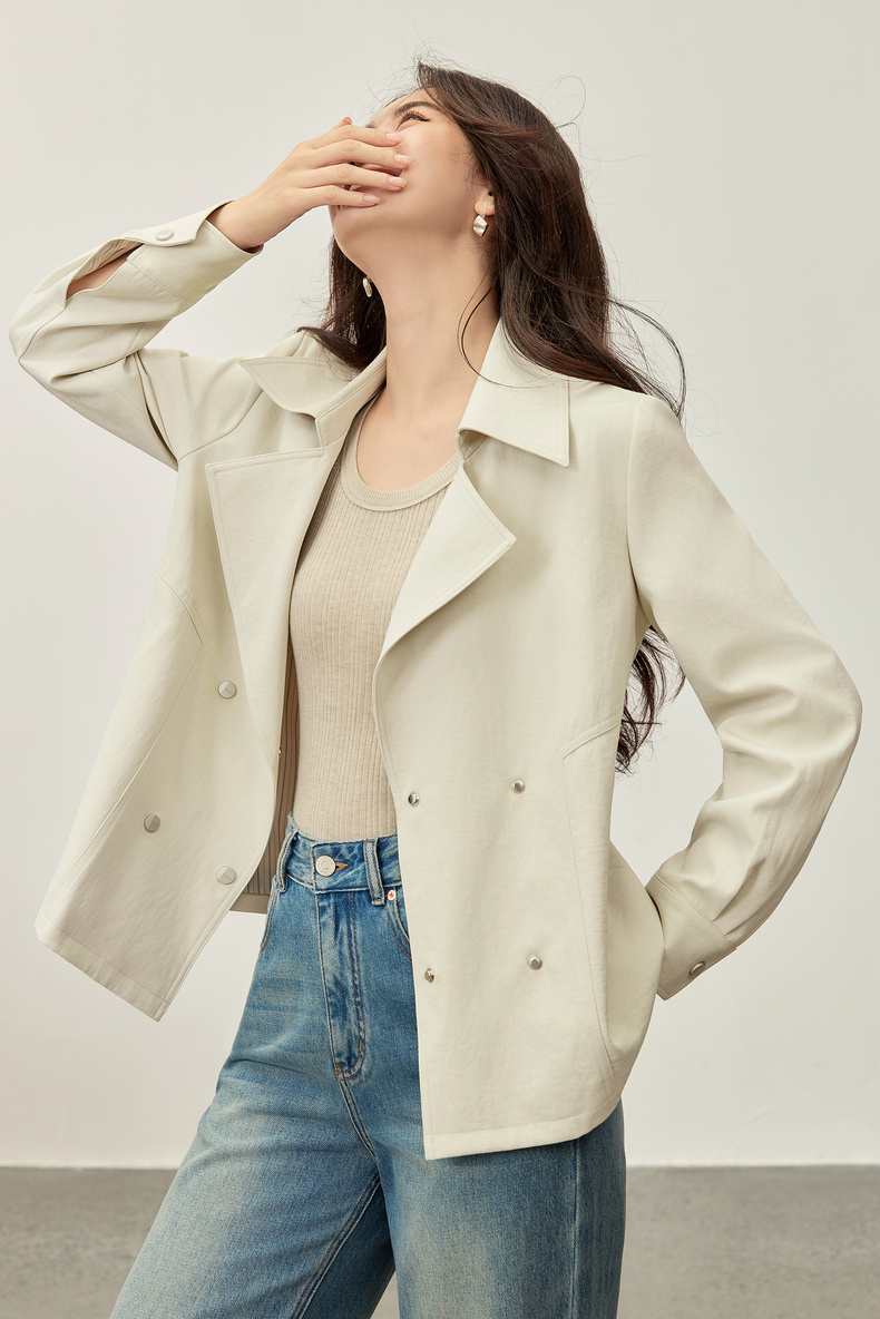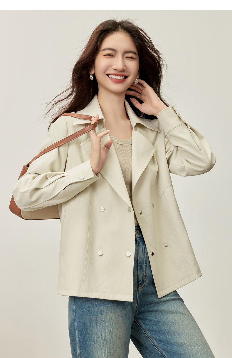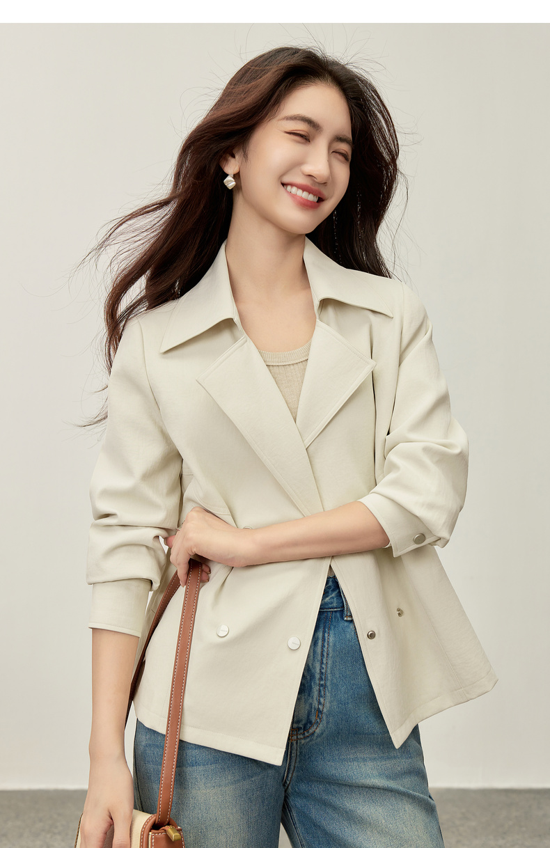 【内购】【双排扣】都市通勤气质翻驳领门襟字母四合扣长袖风衣外套-153WB2255