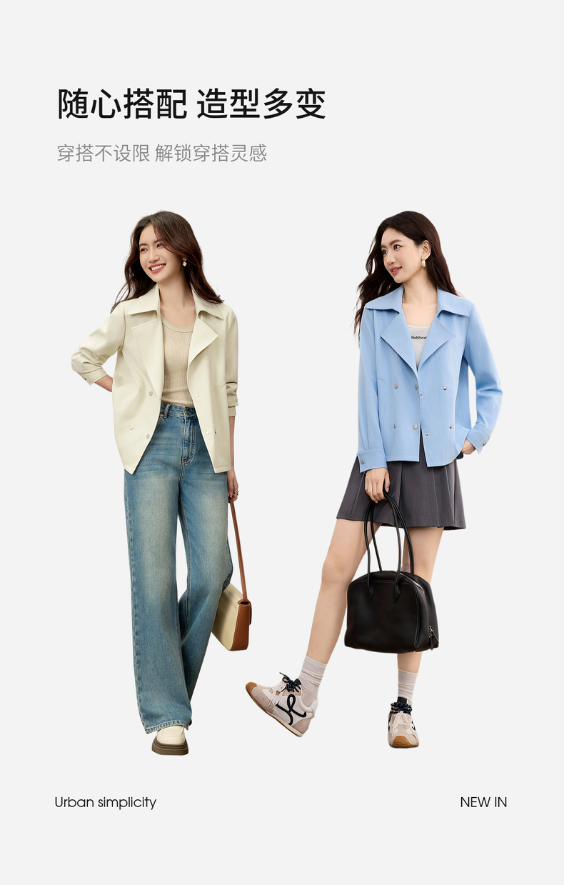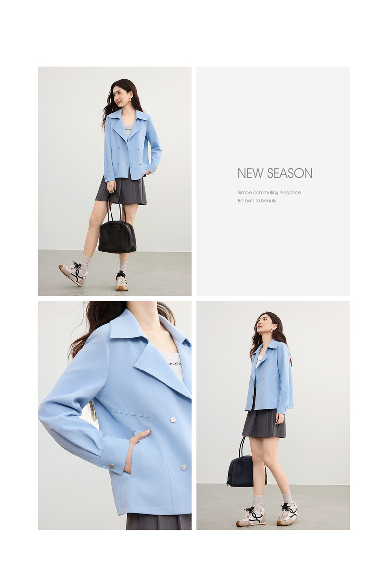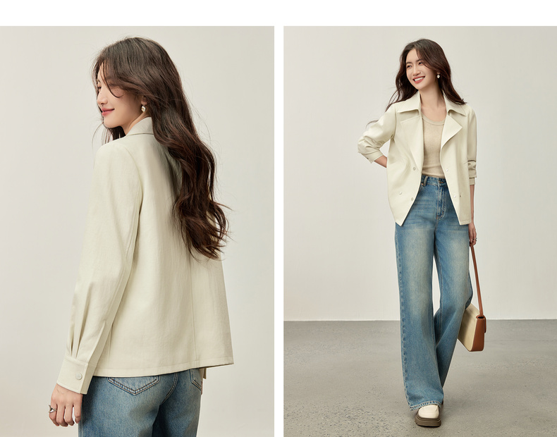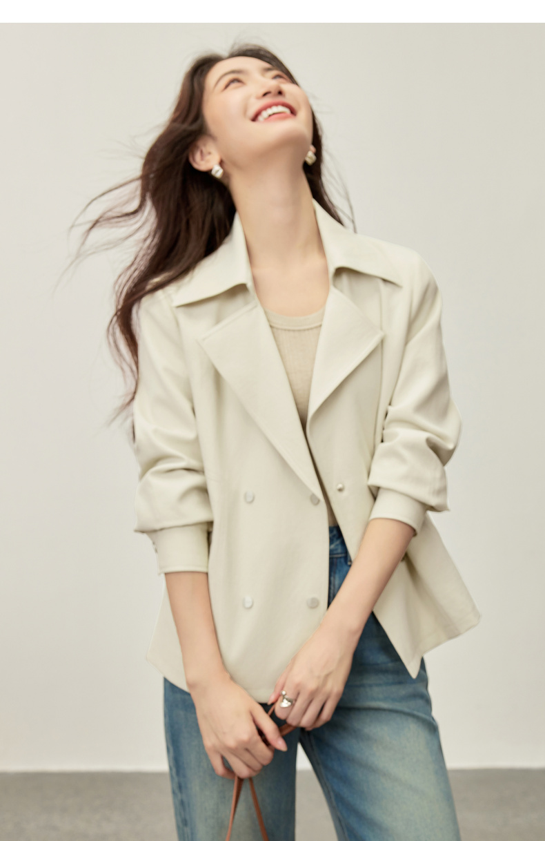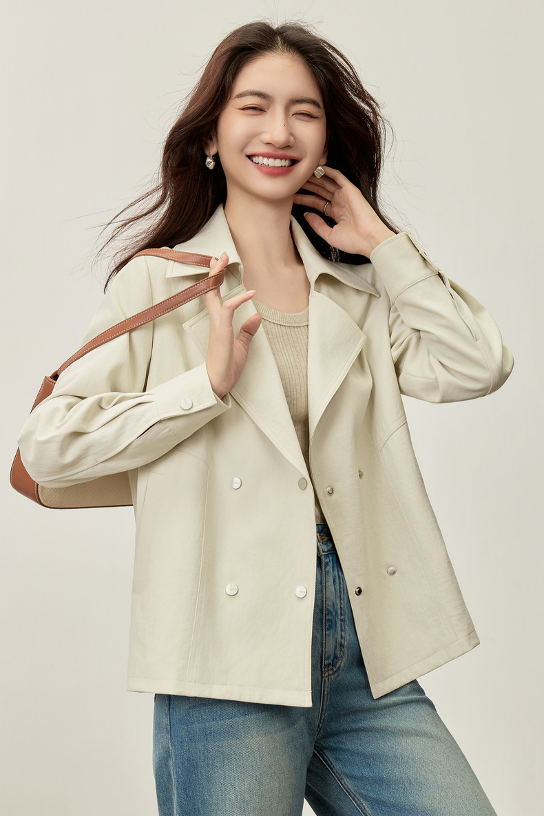 【内购】【双排扣】都市通勤气质翻驳领门襟字母四合扣长袖风衣外套-153WB2255