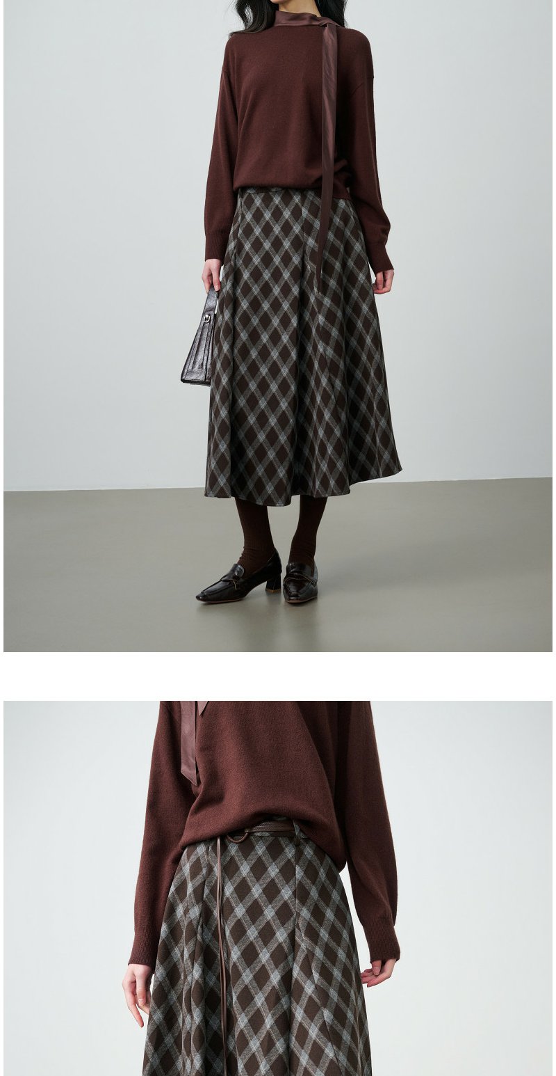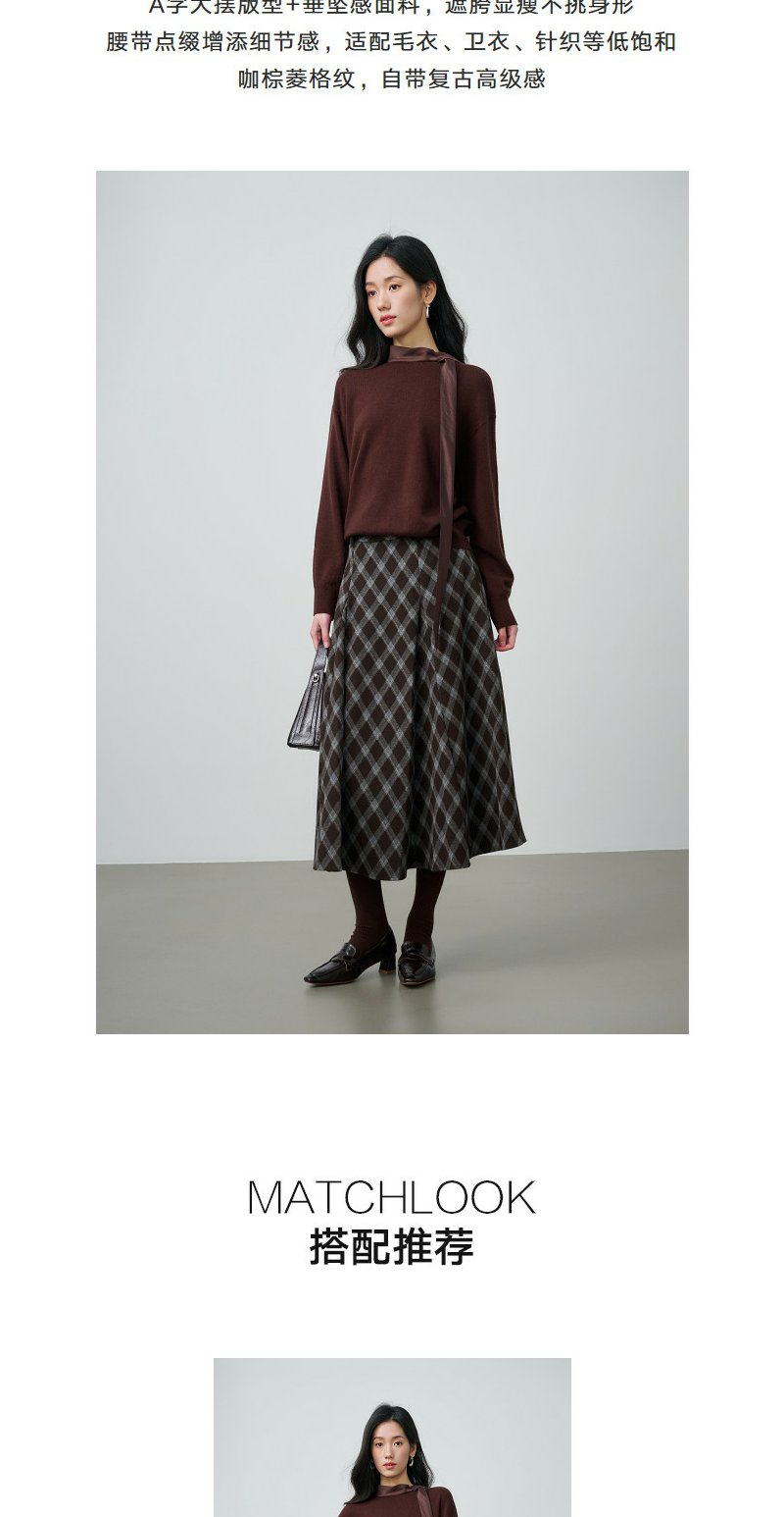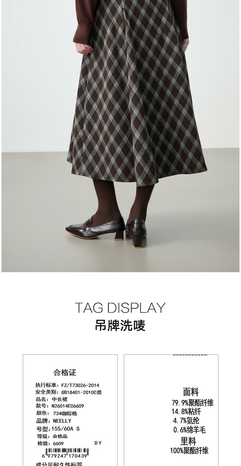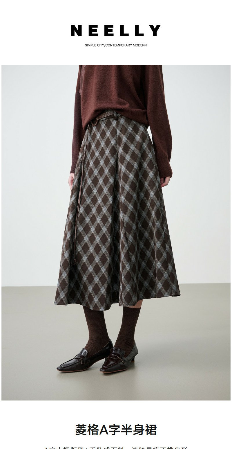NEELLY纳俪商场同款春新款复古菱格A字半身裙女撞色吸睛休闲长裙N26014E06609