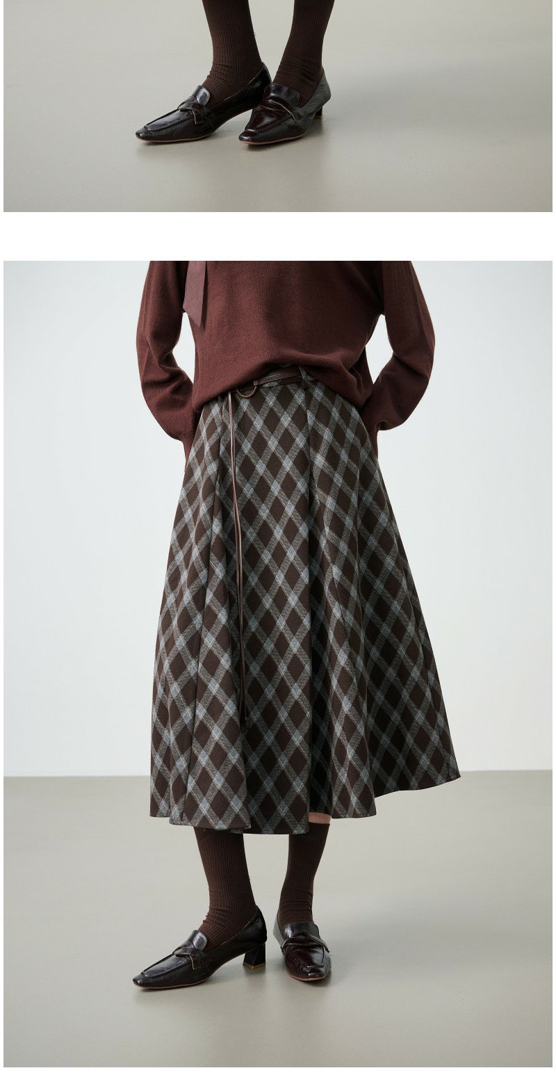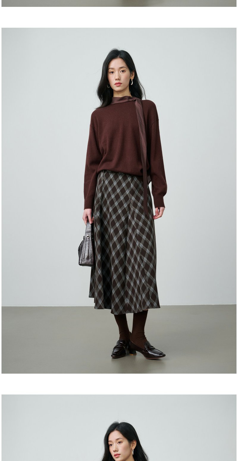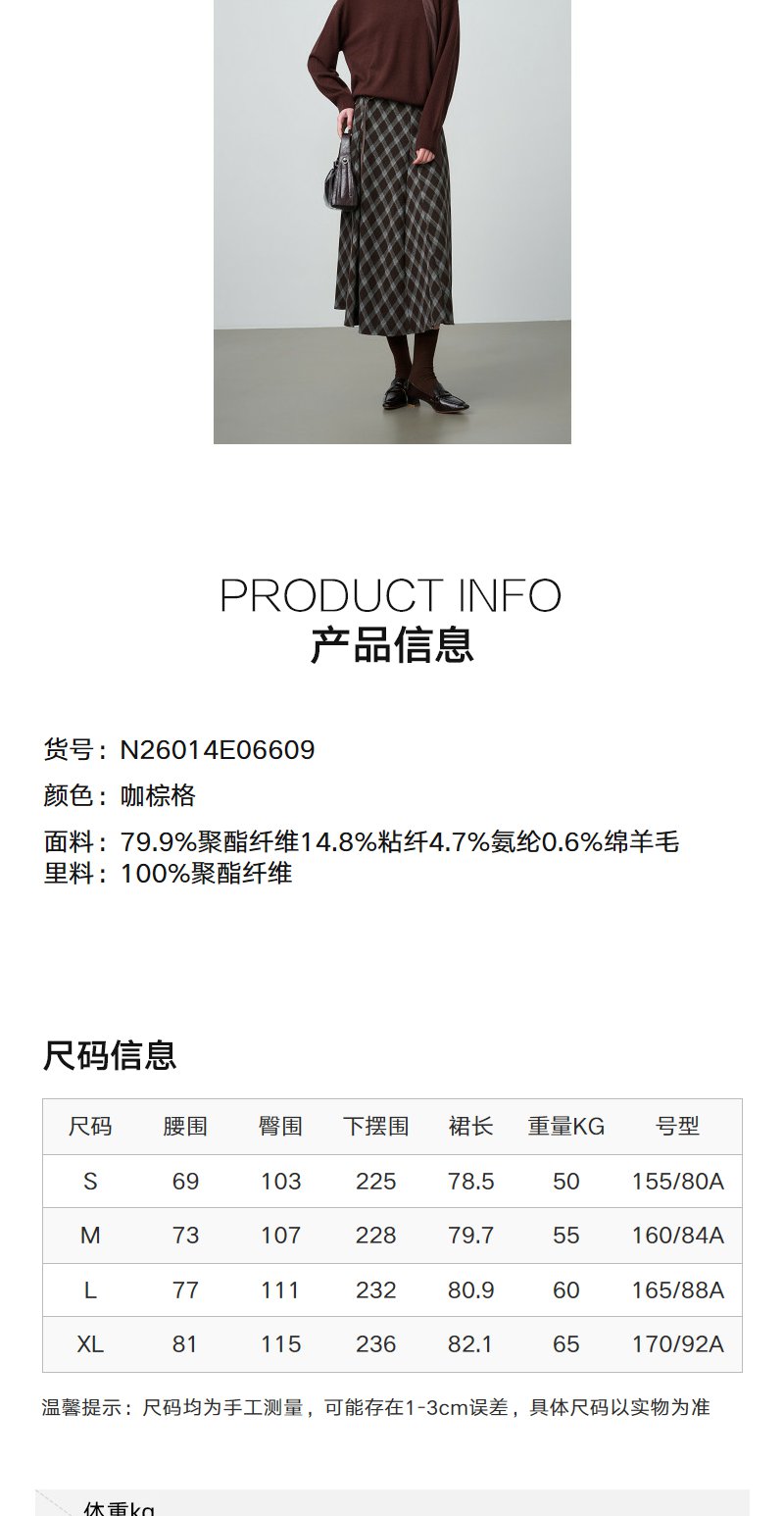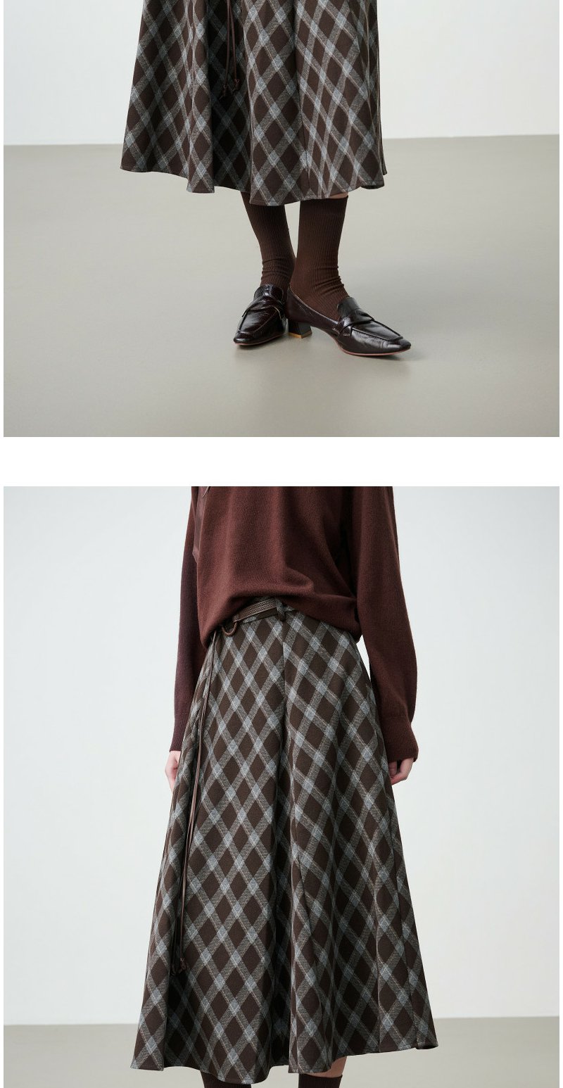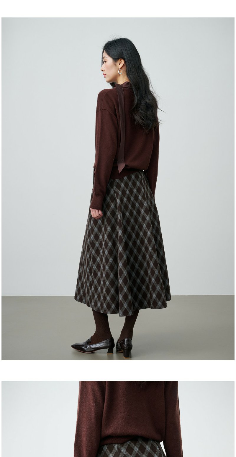 NEELLY纳俪商场同款春新款复古菱格A字半身裙女撞色吸睛休闲长裙N26014E06609