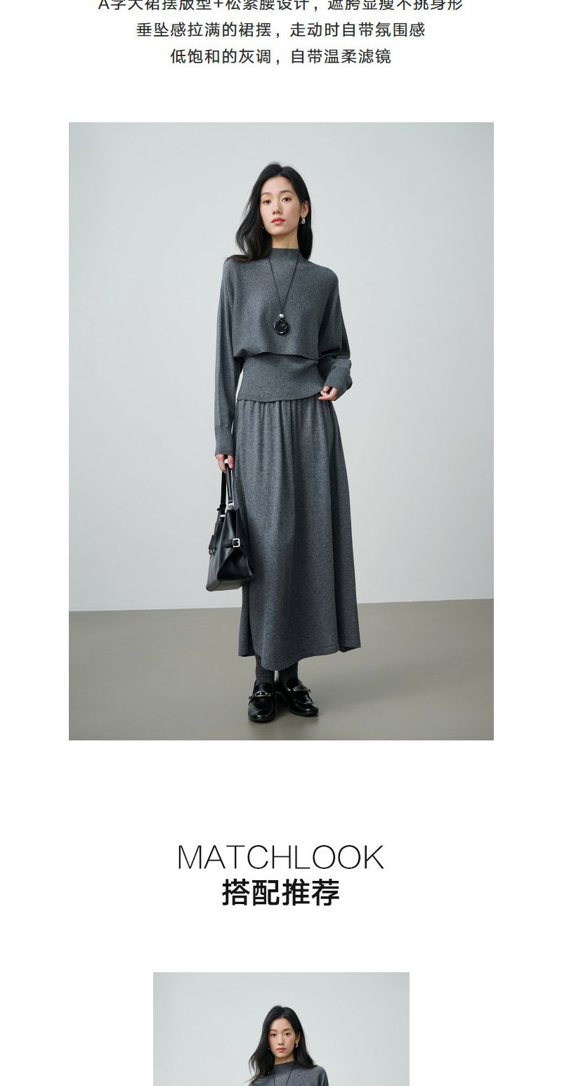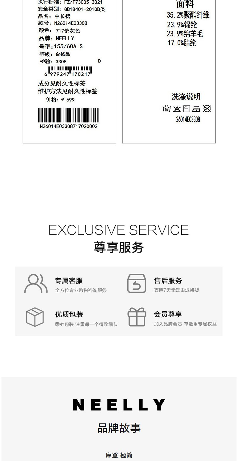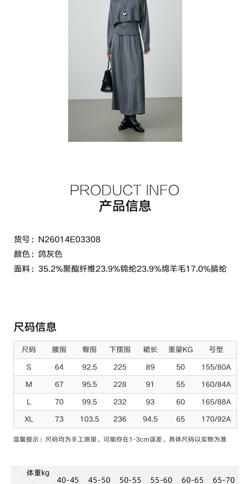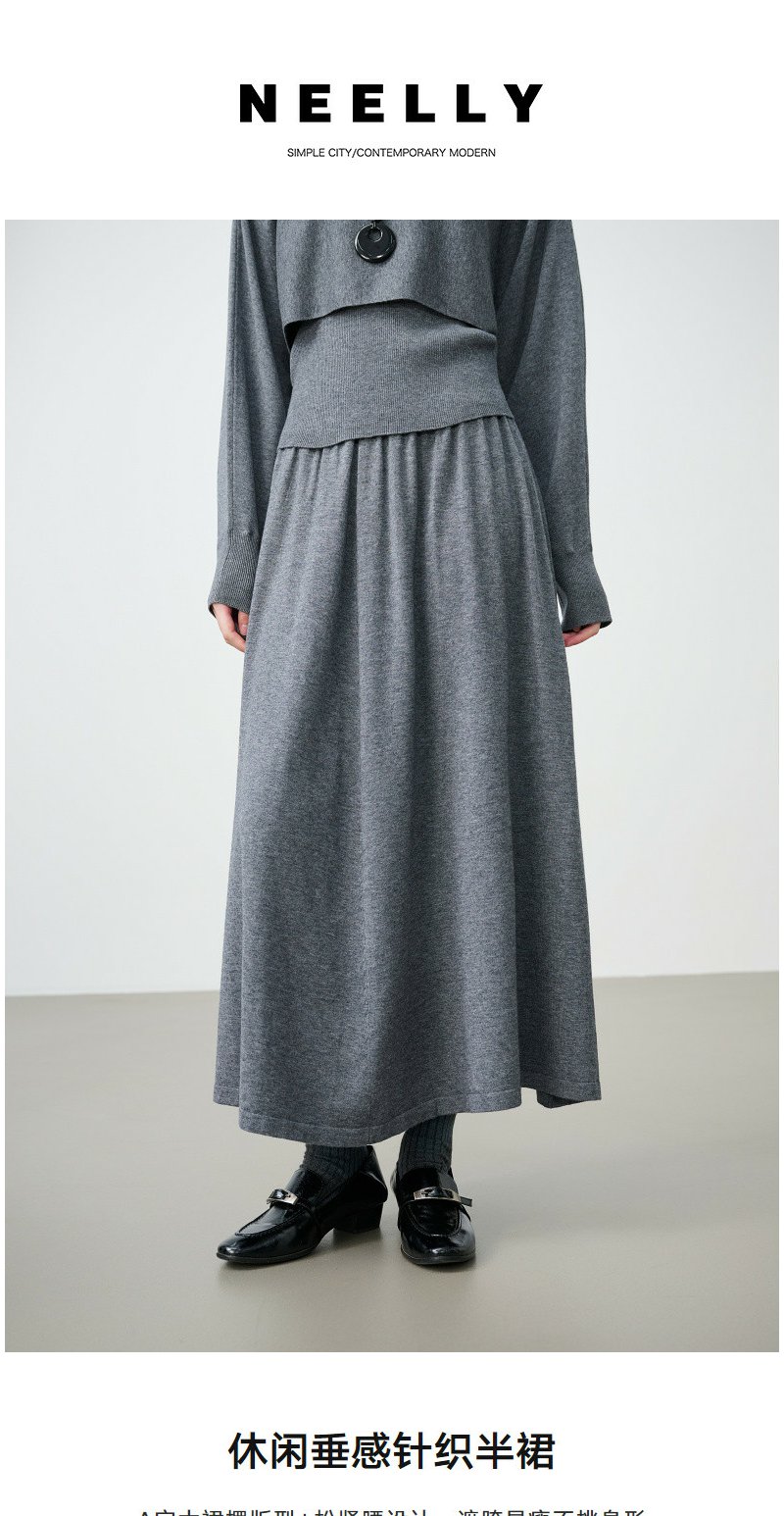 NEELLY纳俪商场同款春季新款休闲垂感针织半裙女舒适百搭温柔长裙N26014E03308