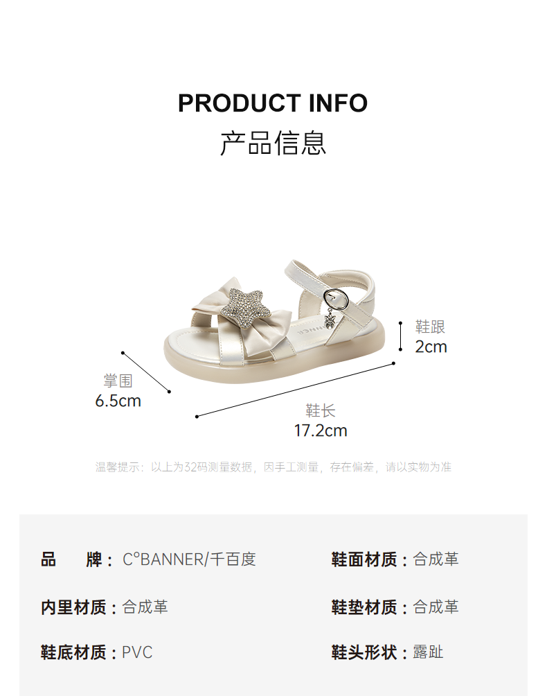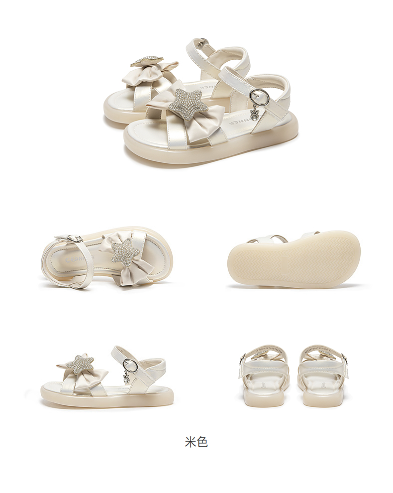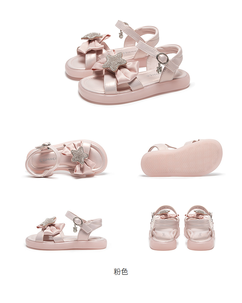 千百度童鞋蝴蝶结平底休闲凉鞋女童洋气可爱外穿凉鞋A25357301