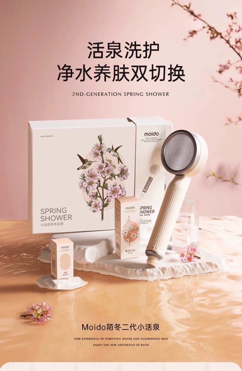 moido陌冬二代小活泉美肤手持花洒过滤增压淋浴喷头除氯洗澡莲蓬(岩峰)