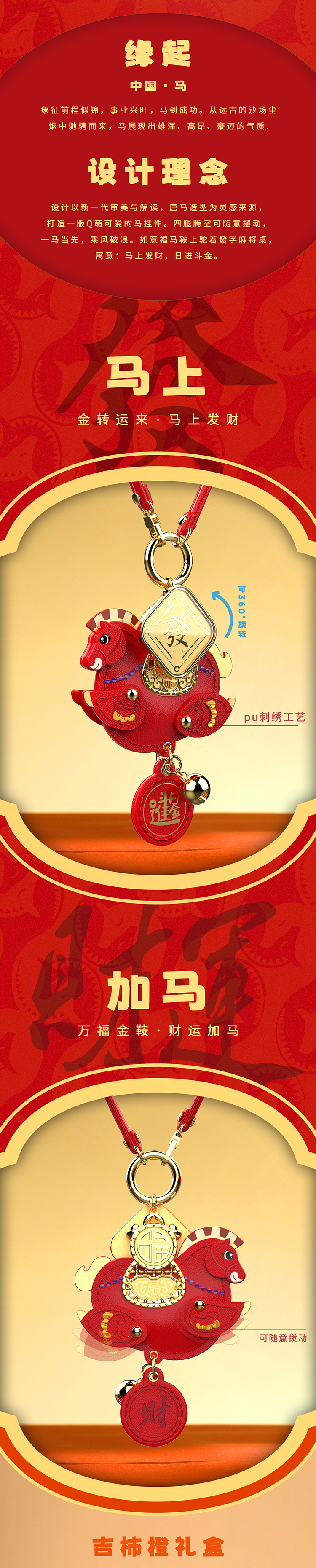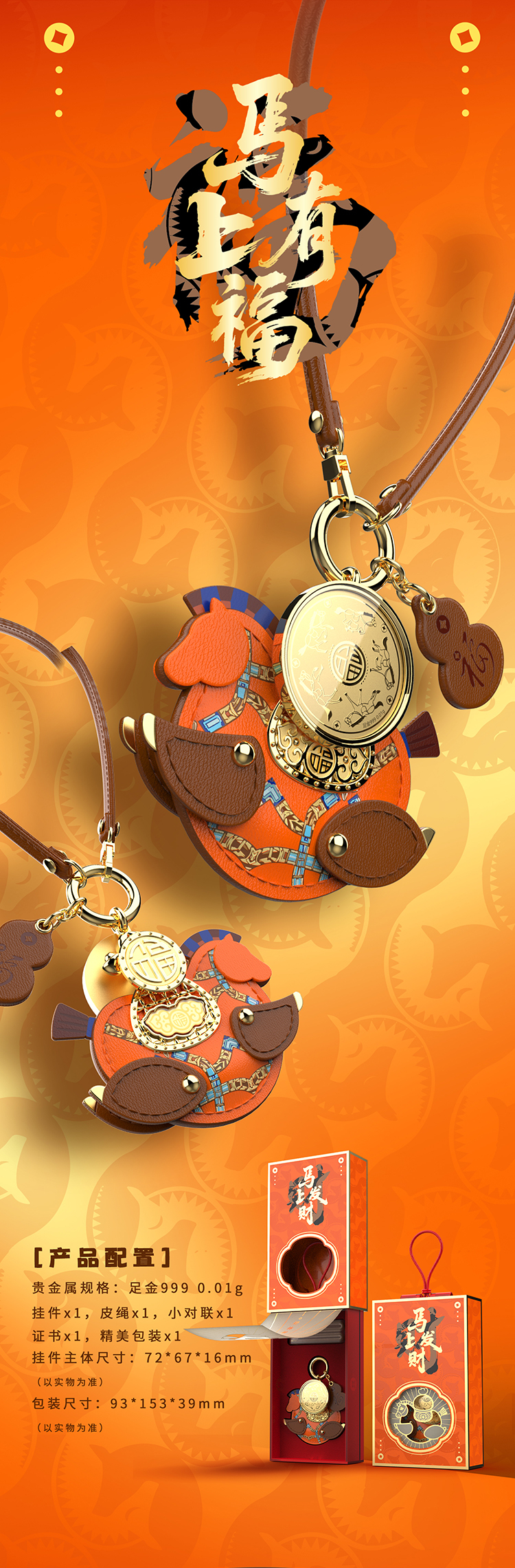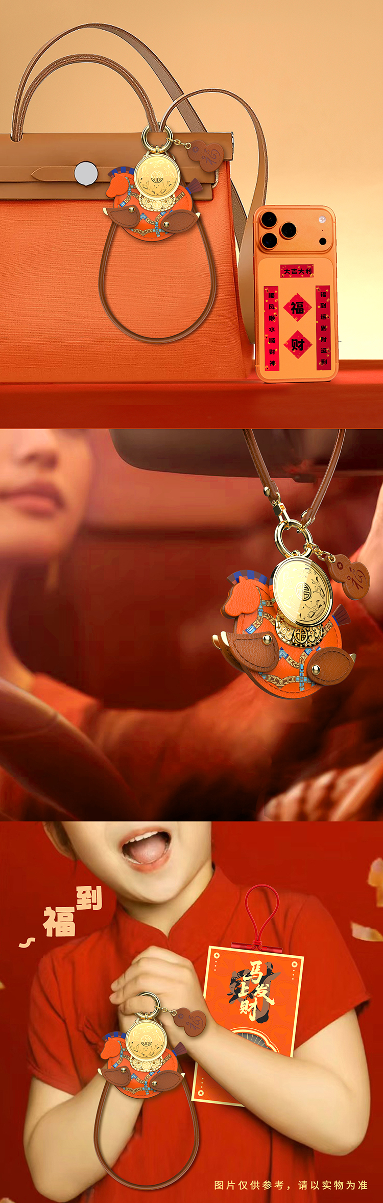 心选丨2026马年福气循环足金 中国红/吉柿橙马挂饰礼品 元旦新年喜庆礼品配饰本命年福气加码