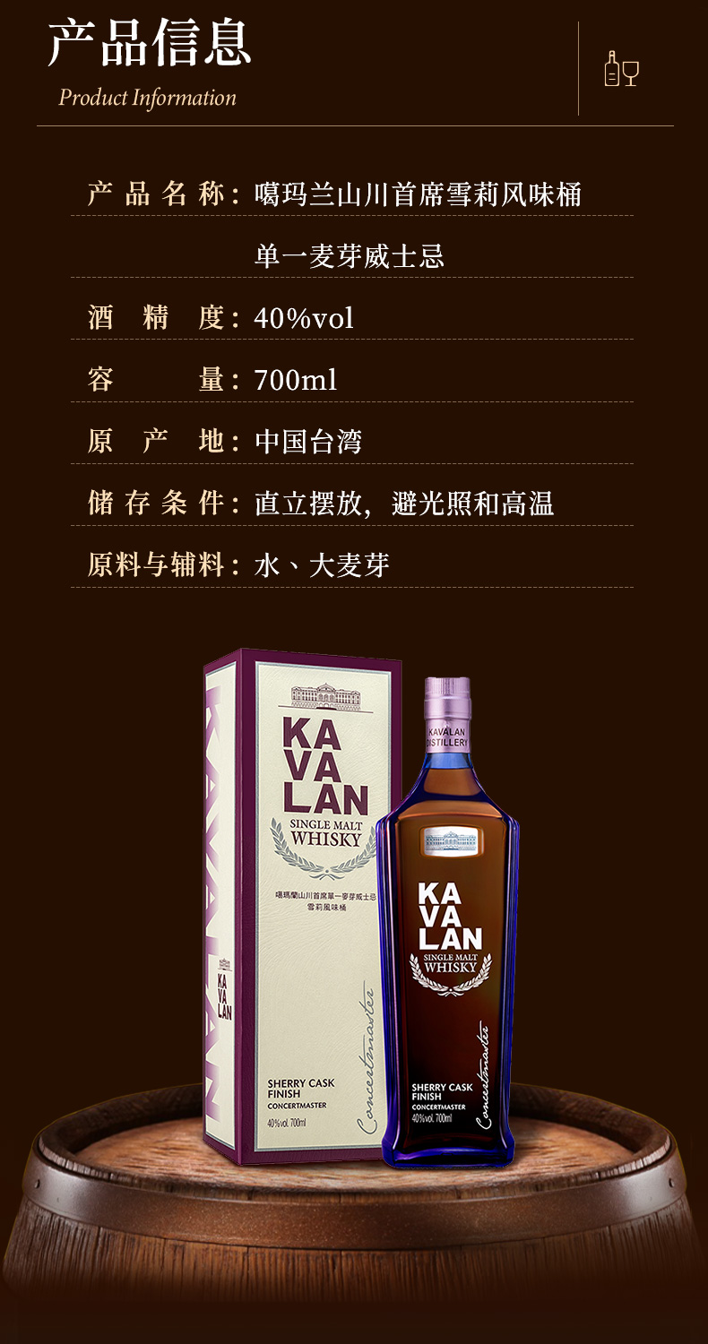 【新春礼盒】噶玛兰(Kavalan)雪莉桶熟成单一麦芽中国台湾威士忌