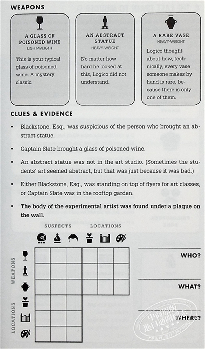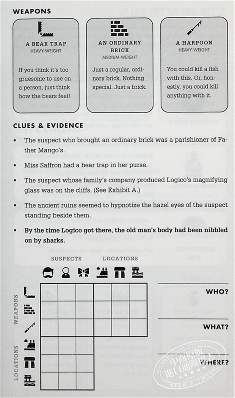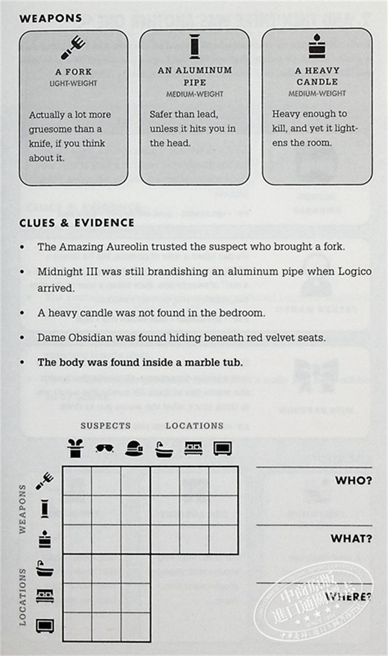 Murdle Junior:好奇心眼中的奇怪犯罪,有超过四十个谜团,包括关键嫌疑人、地点、线索等,可输入您值得信赖的推理网格,是孩子们喜欢深入的邪恶世界的介绍,使用逻辑和推理的力量来找出每个凶手。