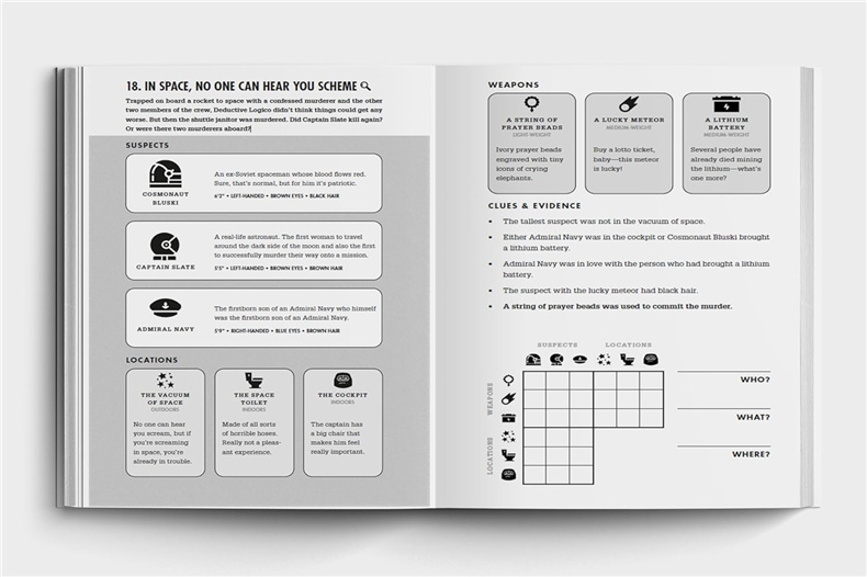 With over forty mysteries featuring key suspects, locations, clues and more to enter into your trusty deduction grid, Murdle Junior: Curious Crimes for Curious Minds is an introduction to a nefarious world will love to dive into, using logic and the power of deduction to figure out each whodunnit.