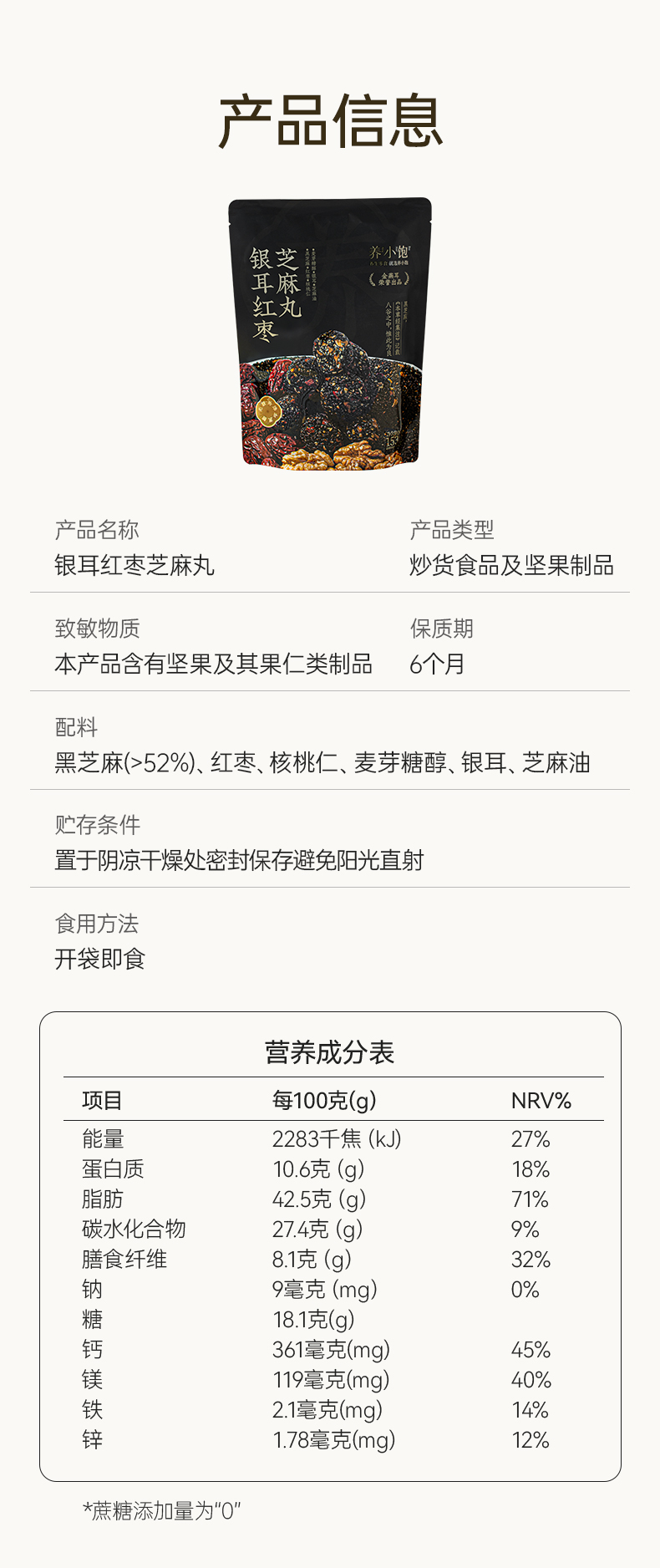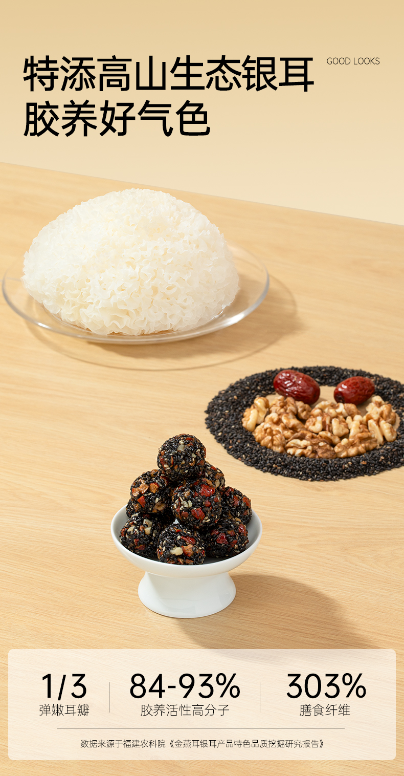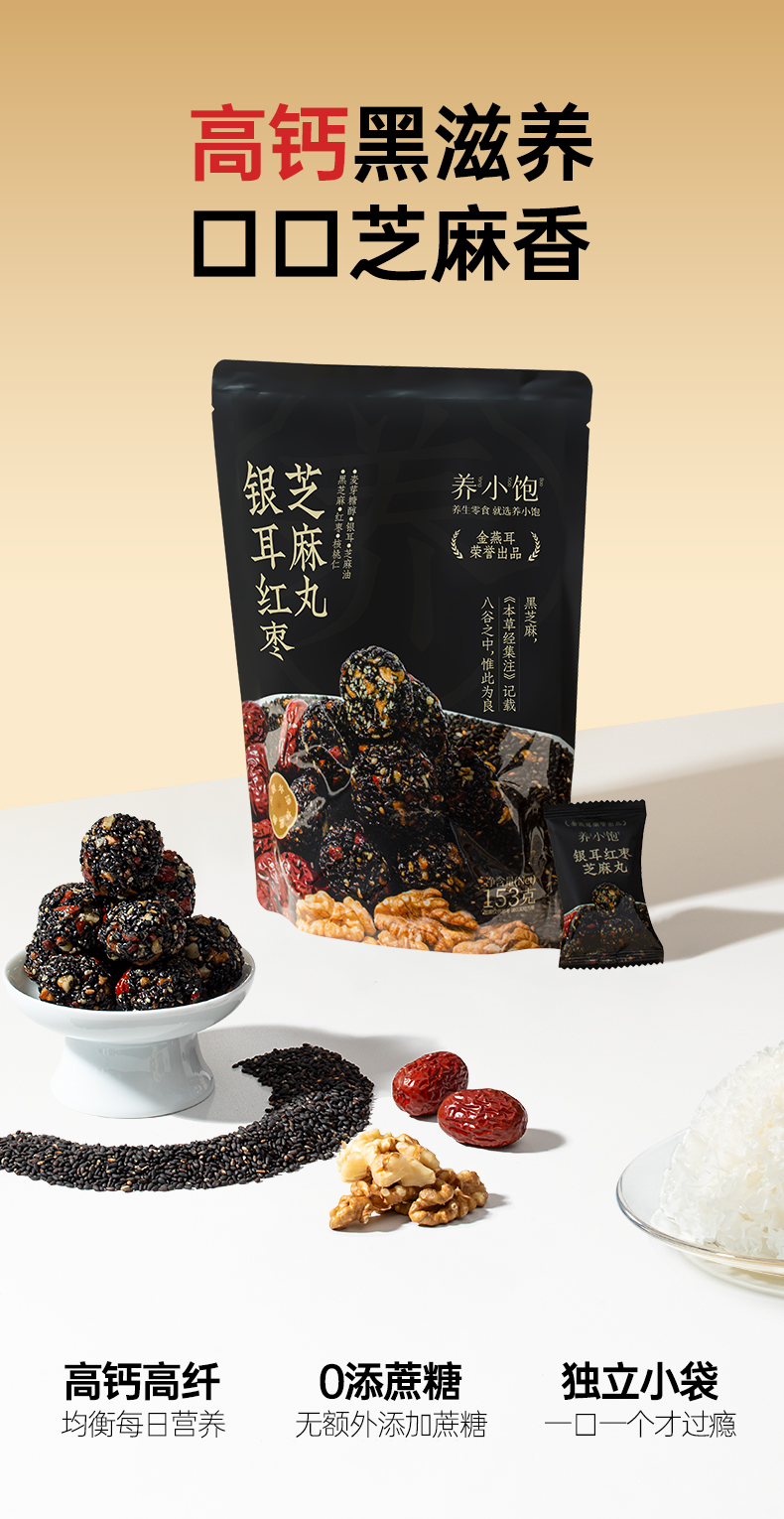 金燕耳-养小饱 银耳红枣芝麻丸 高钙高纤 独立包装 无蔗糖 粒粒芝麻口感更丰富 153g/包
