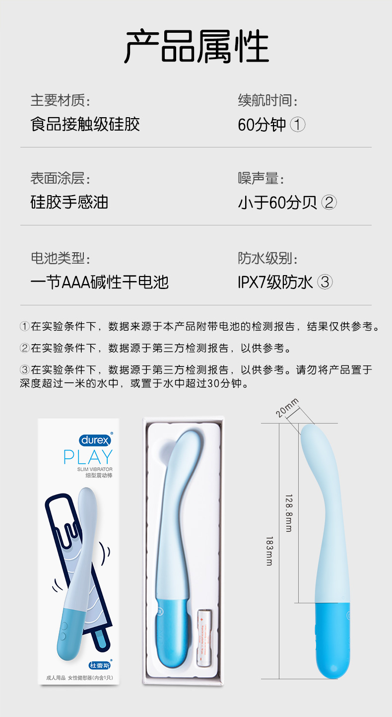 杜蕾斯durex 海盐冰淇淋震动棒女用自慰器私处可插秒刺激细型硅胶软体AV棒 情趣性用品 02细型震动棒