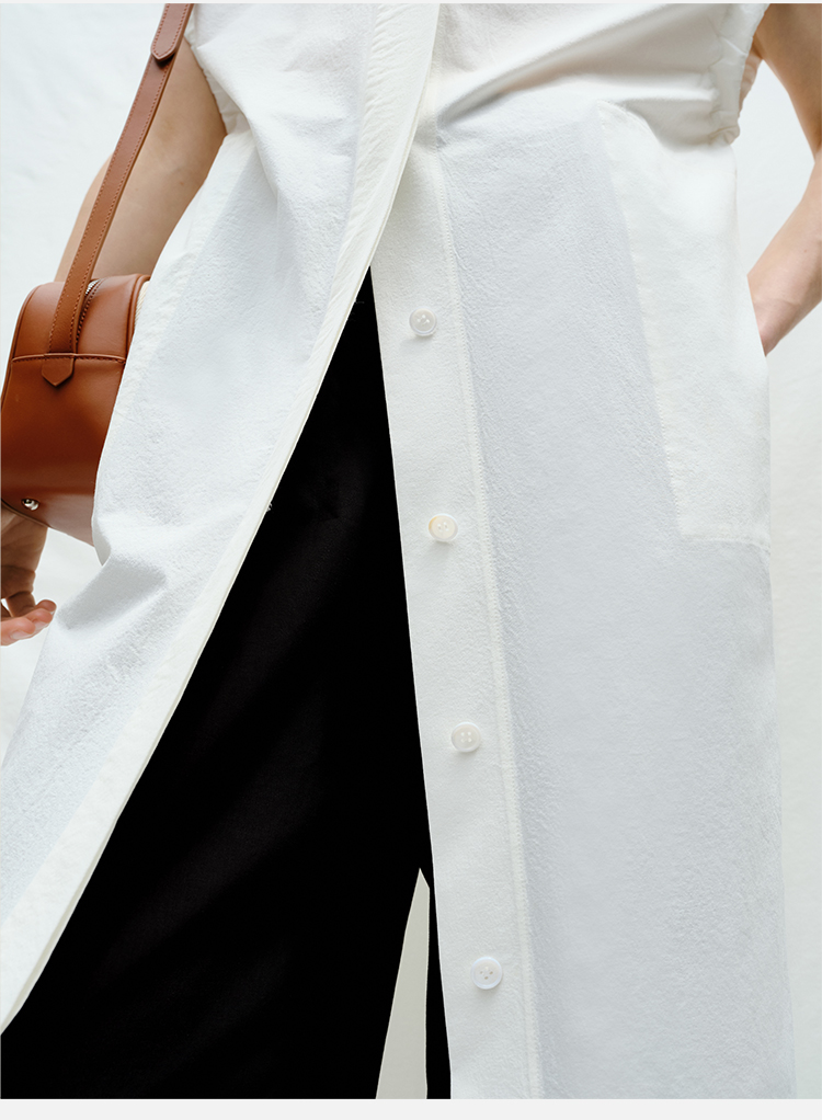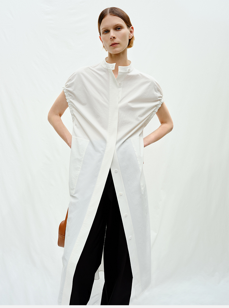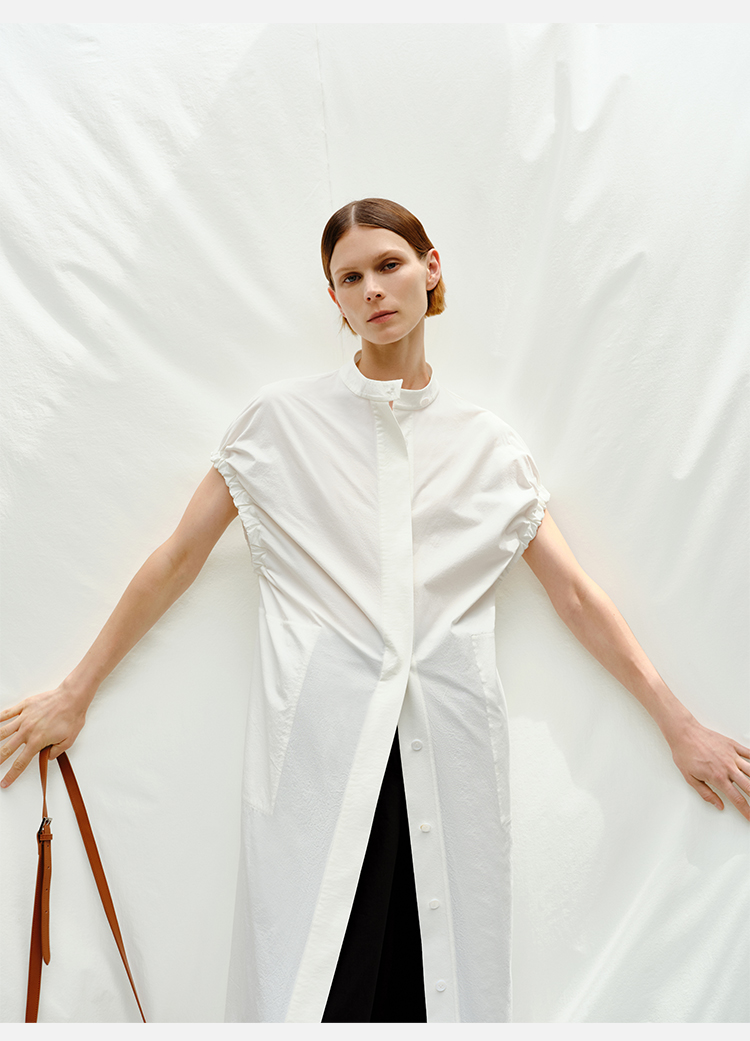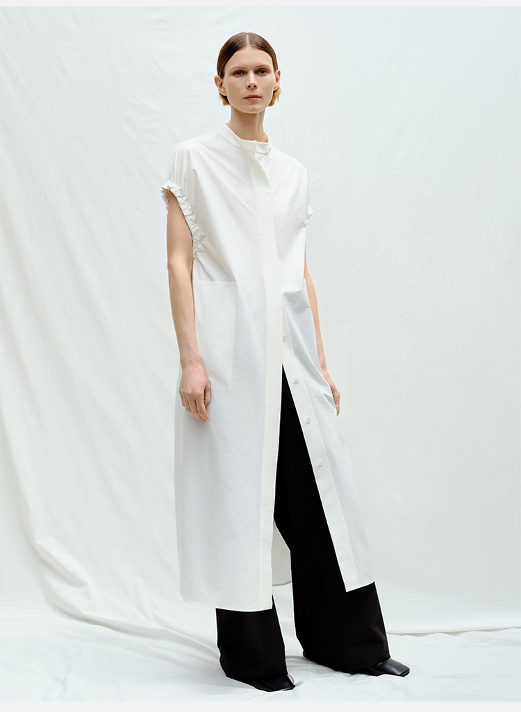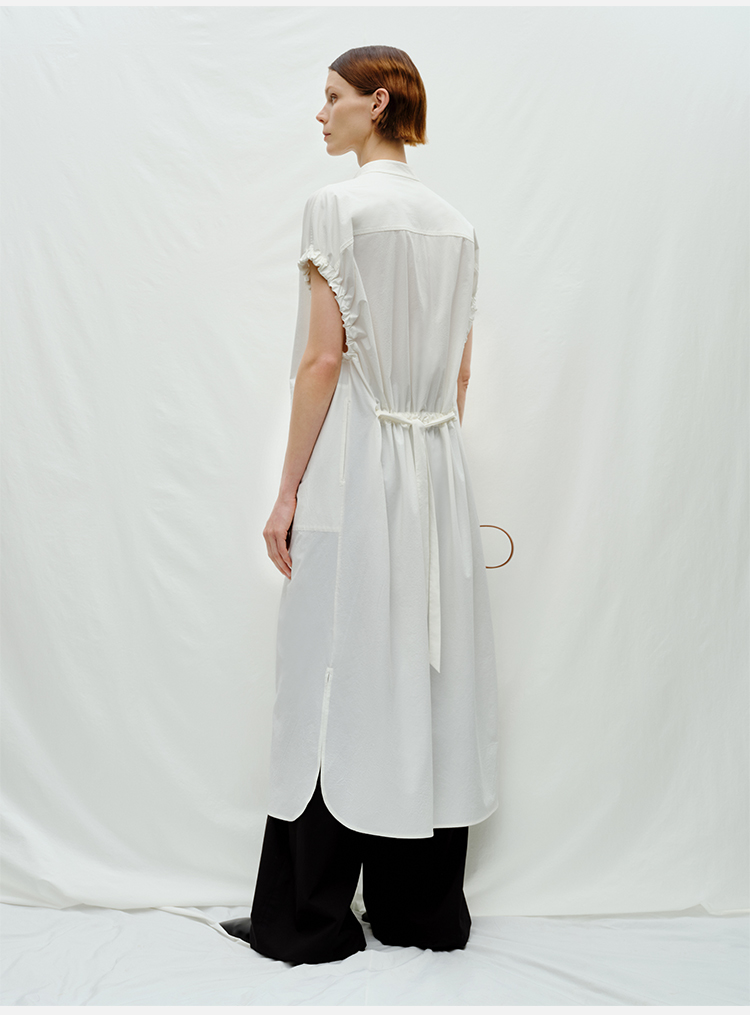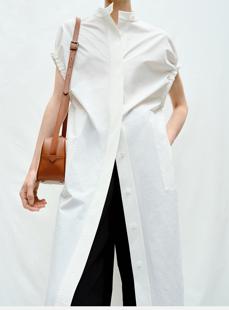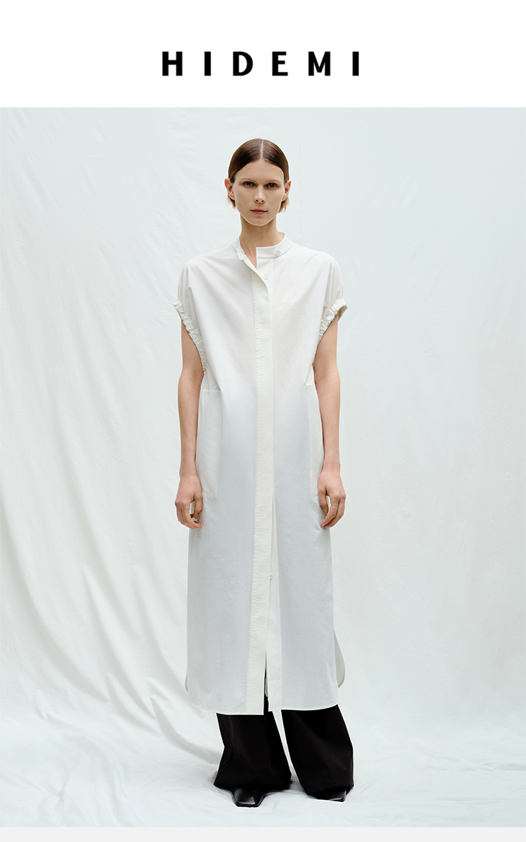 HIDEMI度假系列花苞袖极简廓形口袋衬衫连衣裙