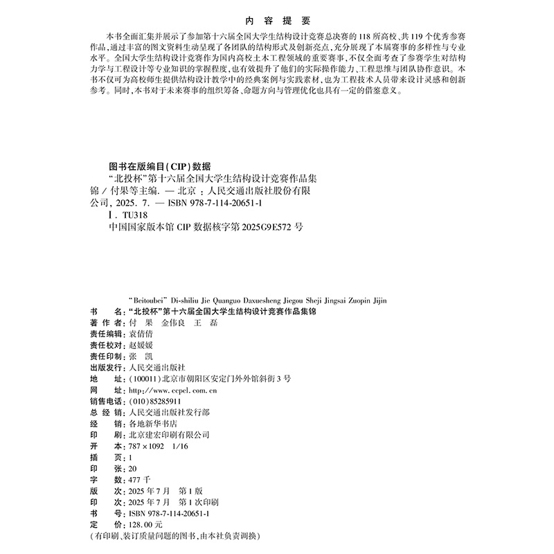 书名:“北投杯”第十六届全国大学生结构设计竞赛作品集锦