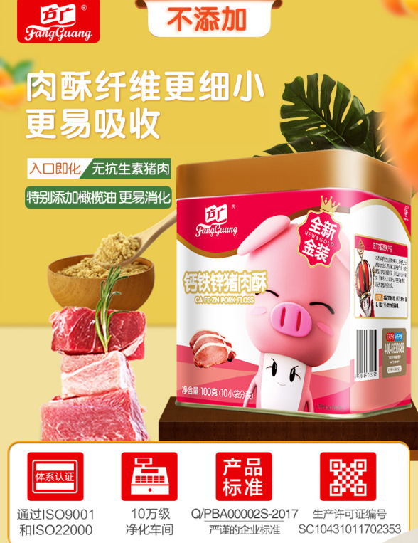 方广肉酥宝宝零食儿童肉松鸡肉酥100g/罐