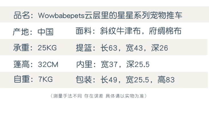 Wowbabepets云层里的星星中大型猫狗宠物推车轻便折叠外出便携