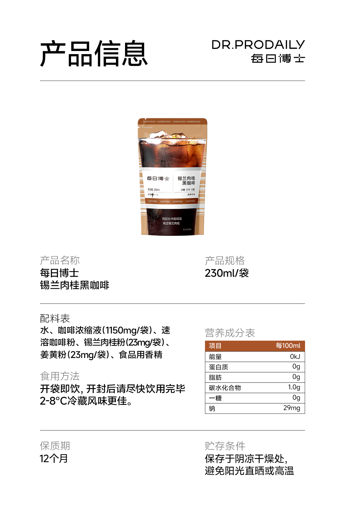 ⁵近效清仓69元/11袋【锡兰肉桂咖啡/无糖冷萃咖啡】230ml一袋 效期至26年5月 YY05-QTT-SA